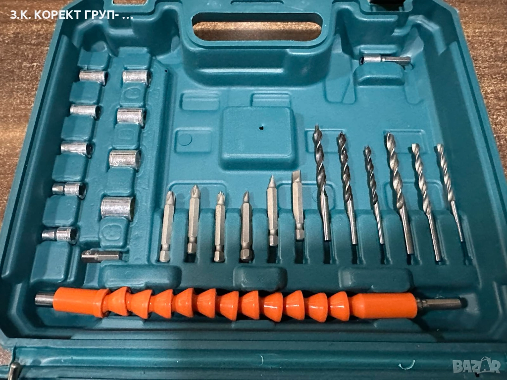 В комплект с две батерии, зарядно, винтоверт и 25 броя накрайници.