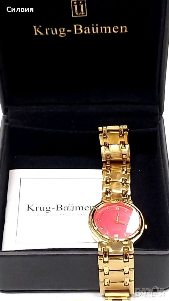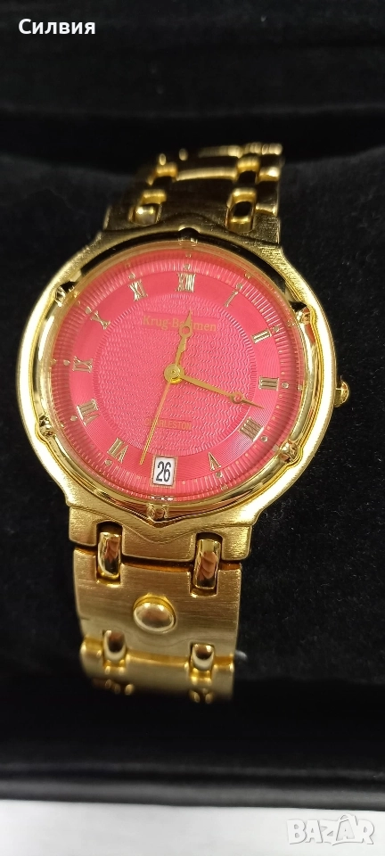 часовник от серията Krug-Bäumen Charleston. Модел с японски кварцов механизъм с функция за дата и с червен цвят на циферблата.