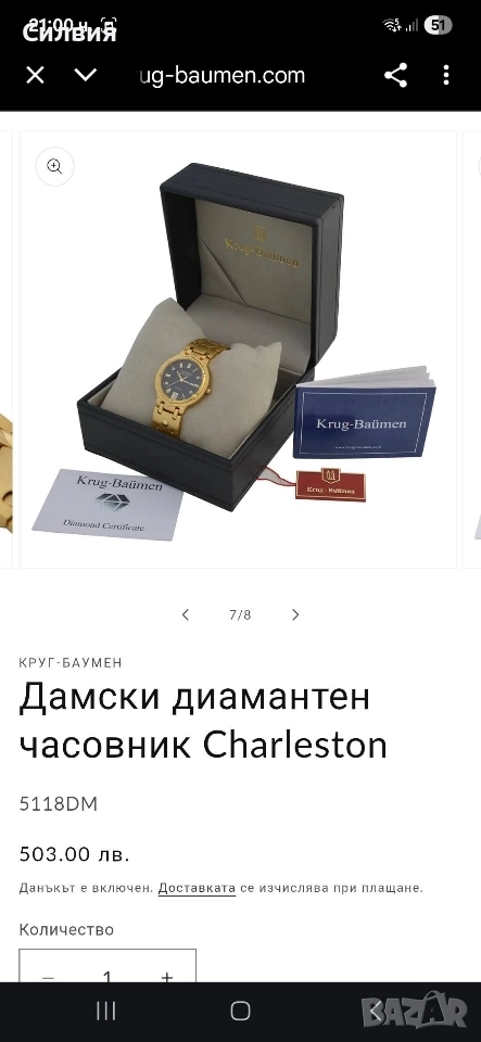 Материал: Корпусът и каишката са изработени от метал с позлата.