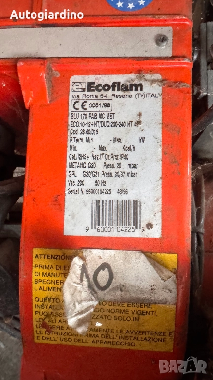 горелка (висок/нискa степен на пламъка) и е конфигуриран за използване с газ.