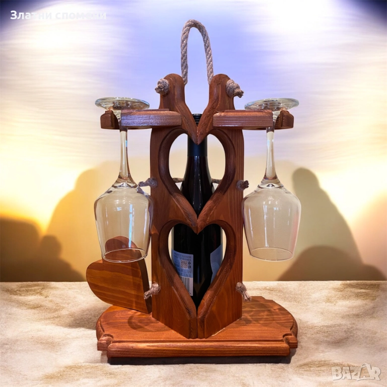 Ръчно изработена стойка за вино за Годишнина (с чаши)