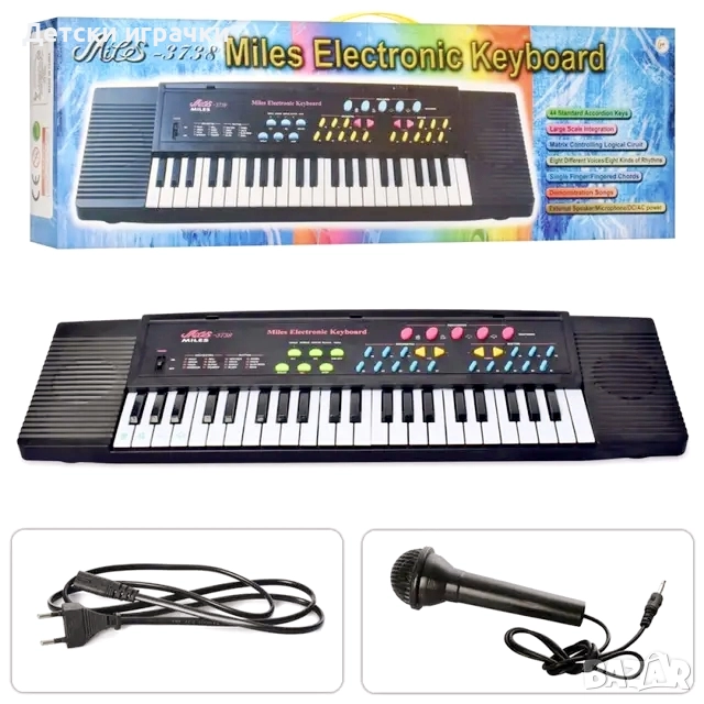 Включеният микрофон добавя допълнителен елемент на забавление, позволявайки на децата да пеят заедно, докато свирят на клавиатурата.