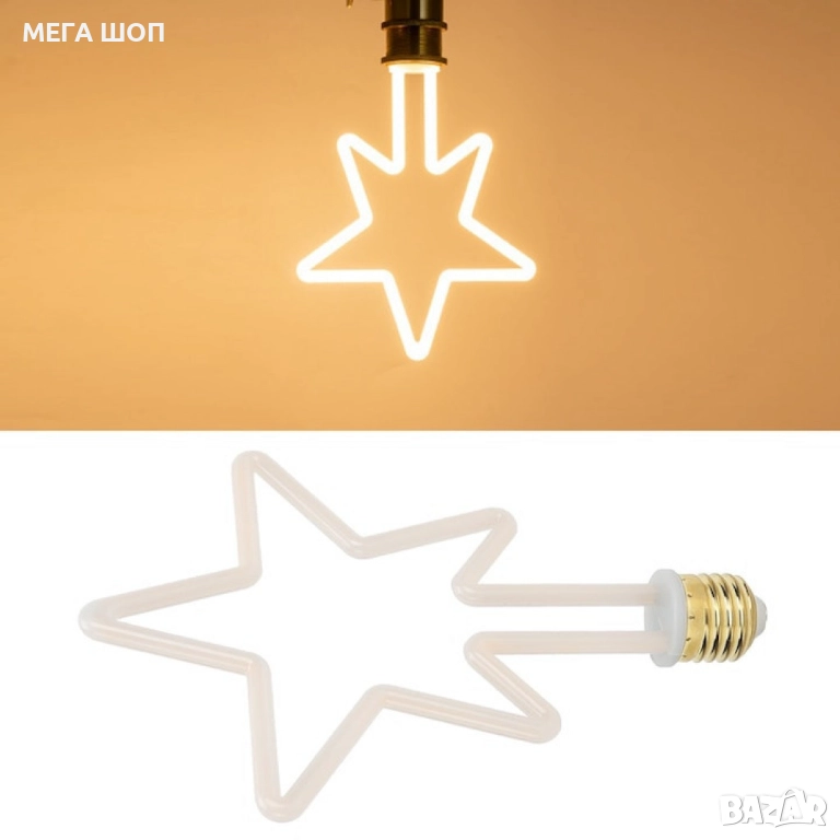 Коледна декоративна LED крушка – топла светлина, две форми: Звезда или Елха → Обява 52643300