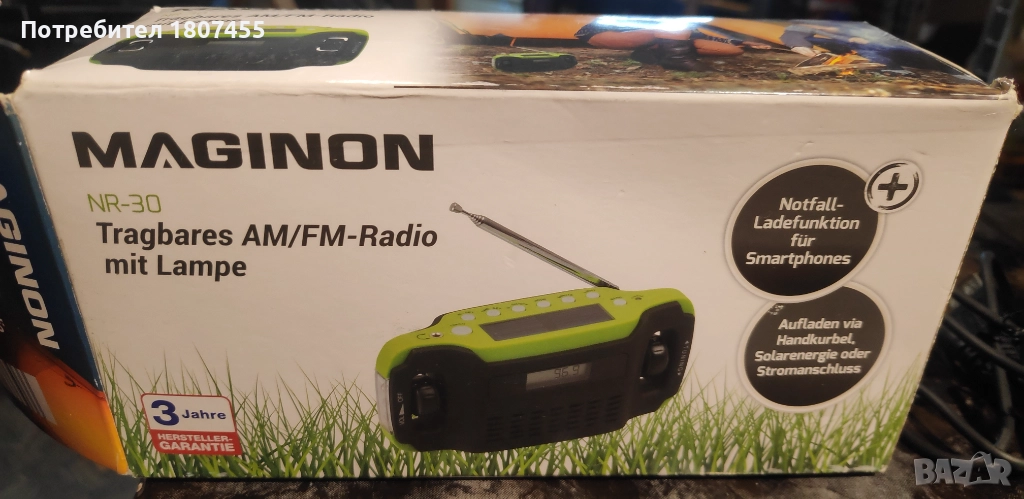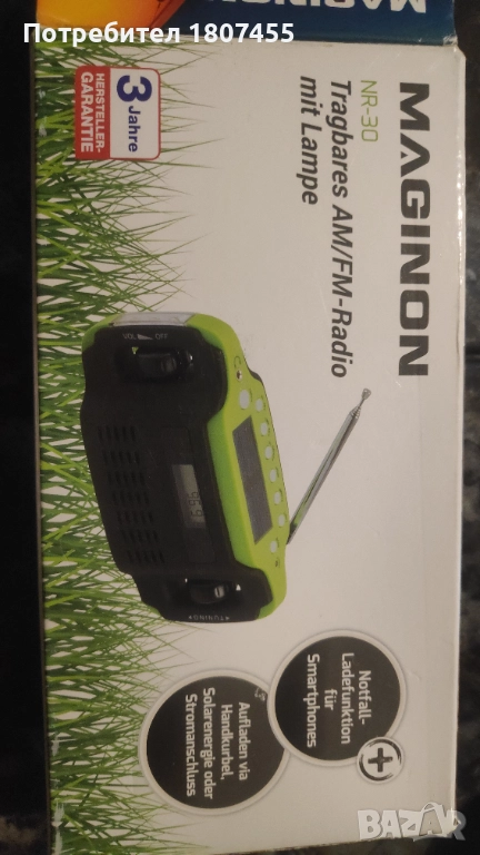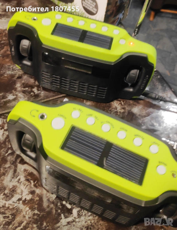 Преносимо автономно радио с фенер, слънчев панел и манивела за зареждане → Обява 52643322