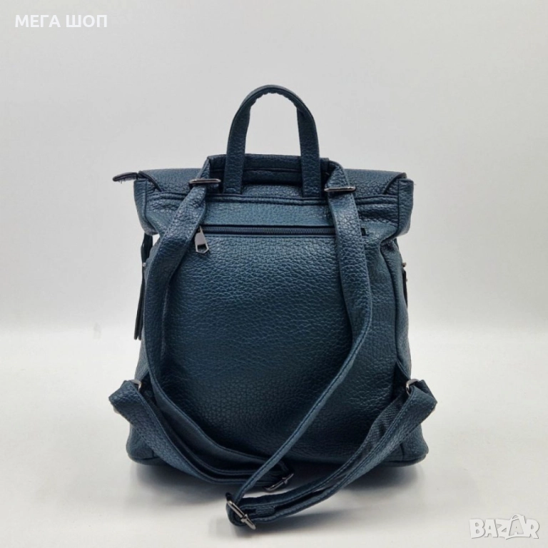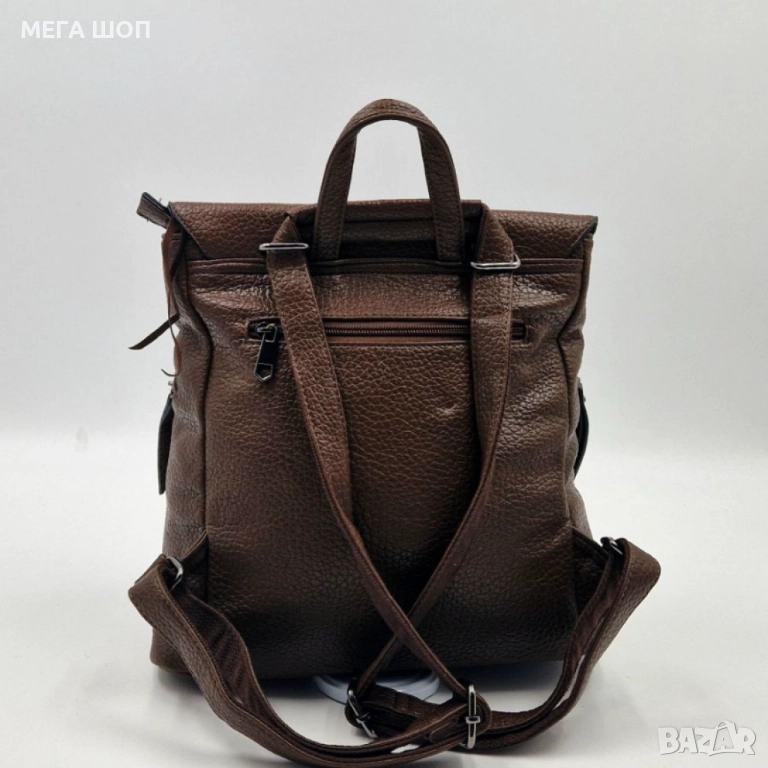 Материал: висококачествена еко к. (ECO LEATHER);Размери: Височина: 36 см/Дължина: 30 см/Дълбочина: 16 см;Основно отделение с цип;Преден капак с магнитно закопчаване;Вътрешни джобове: 1 с цип + 1 отворен;Външен заден джоб с цип;Регулируеми презрамки;Горна дръжка;Подплата: текстил;Цветове в наличност: Черен, Тъмнокафяв ,Кафяв, Бежов, Масленозелен, Бордо, Тъмносин/петролен;
