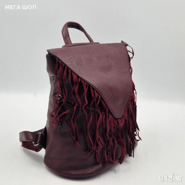 Дамска раница от еко к. с ресни – бохо стил, удобство и обем (36×30×16 см) → Обява 52643484