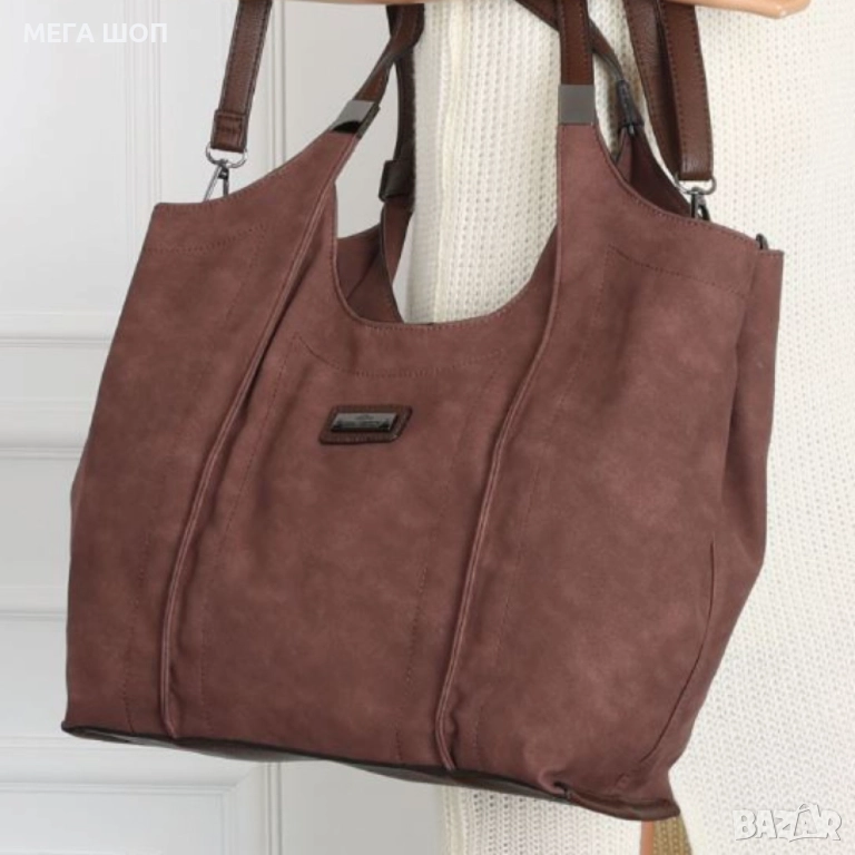 Дамска чанта от еко велур и к. – елегантен и практичен модел (бордо)