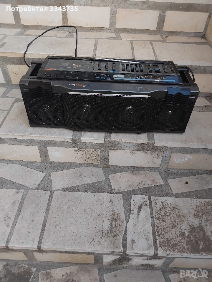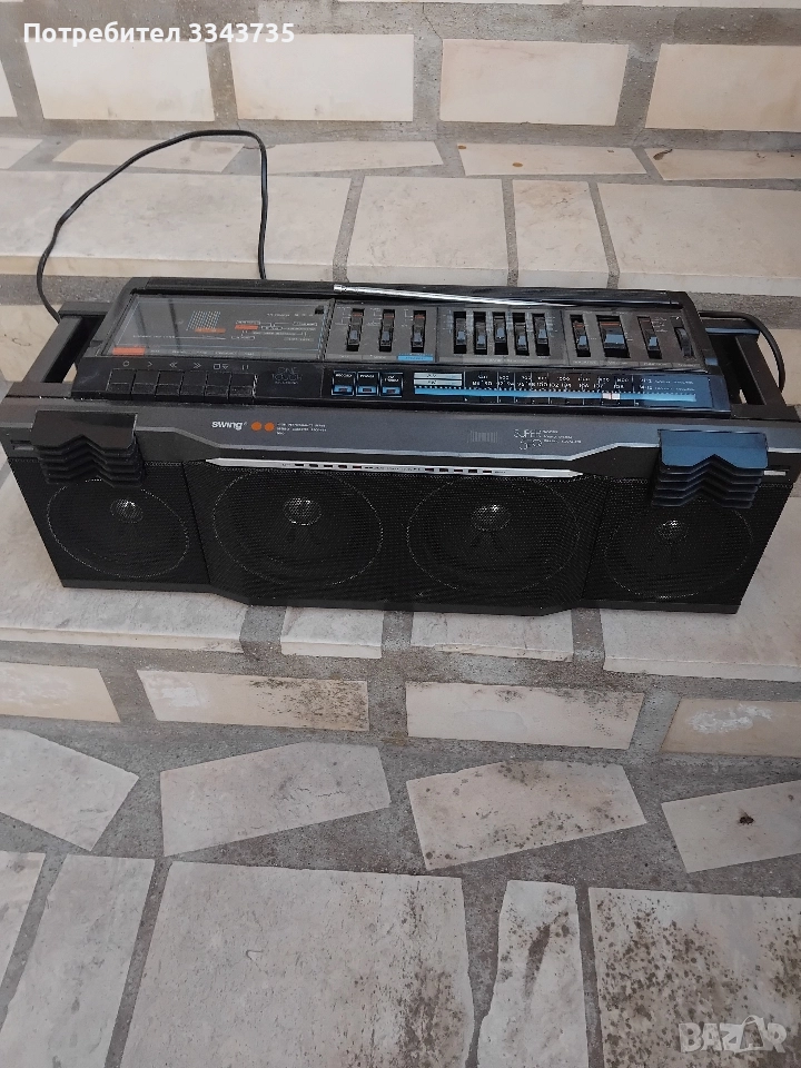 Продавам преносим стерео радиокасетофон SWING(бумбокс)със AM FM вълни.Класически ретро дизайн от 80-те год.колекционерски,рядък модел за ценители с четири тонколони както се вижда от снимките.На радио работи добре силен и мощен звук,но на касета не работи сигурно е скъсан ремъка защото се чува бученето на моторчето но не върти.Ако имате интерес пишете или се обадете възможен е лек коментар върху цената.