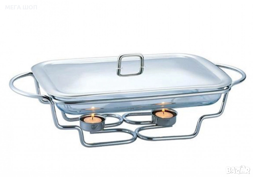 Съд за затопляне Bohmann, 3л. правоъгълен, 2свещи, Стоманен капак, Стъкло, Инокс → Обява 52643565