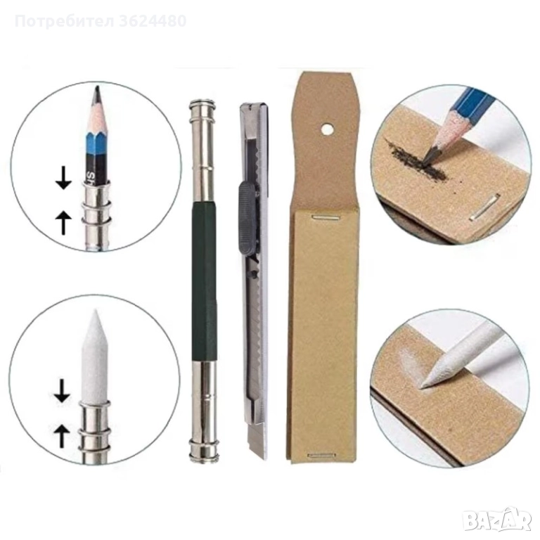 Инструменти за смесване: 3 бр. хартиени блендери и графитни стикове.