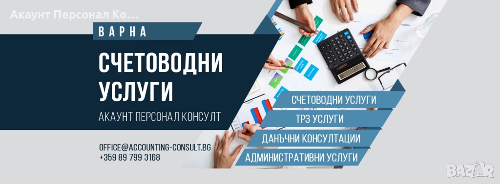 Счетоводна кантора ”Акаунт Персонал Консулт ” в град Варна предлага счетоводни услуги - пълно счетоводно и ТРЗ обслужване за Вашия бизнес.