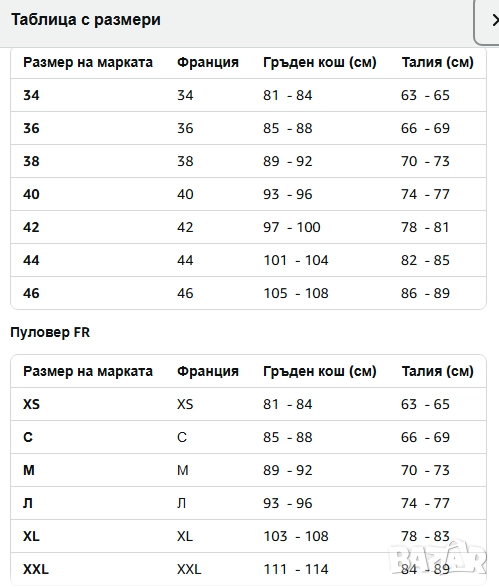 Размер по етикет 44 което е Хл