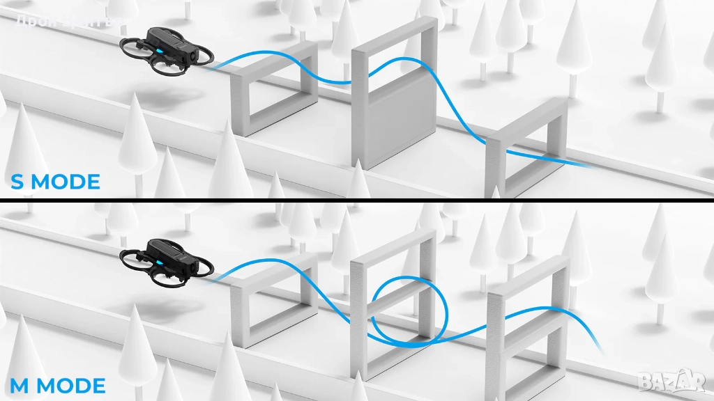 Полетни Режими: N/S/M Режим (Normal/Sport/Manual)