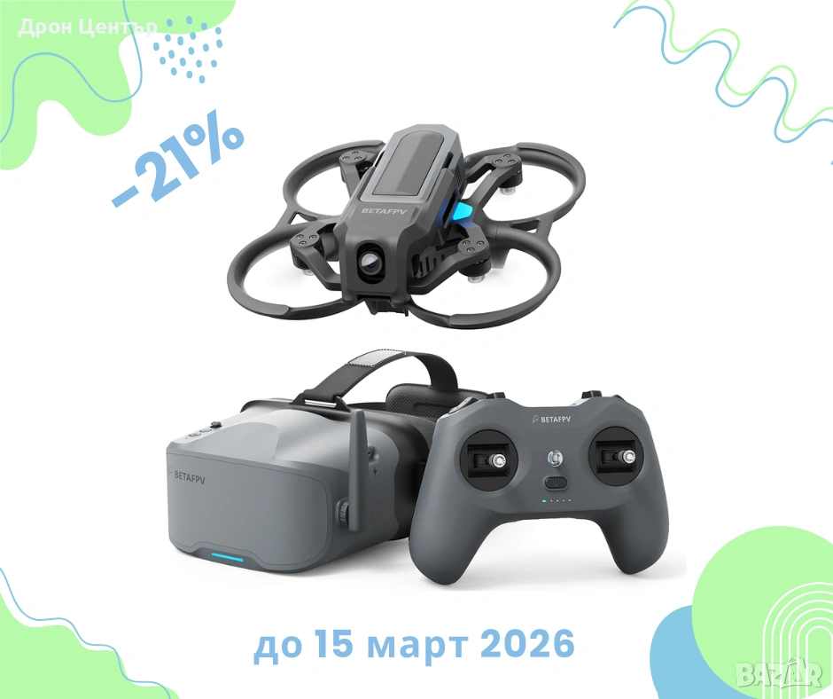 Промоция Дрон комплект Beta FPV Aquila20 с радиопредавател и очила