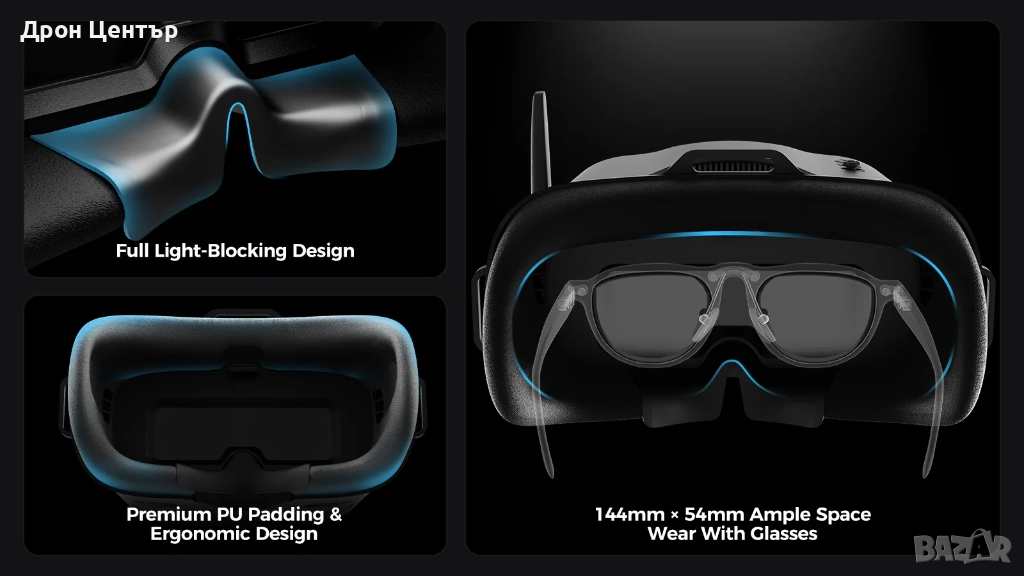 Записвайте Полетите Си Незабавно: VR04 разполага с дизайн, подходящ за хора с очила, и ви позволява да заснемате плавни кадри директно в очилата с натискането на един бутон.