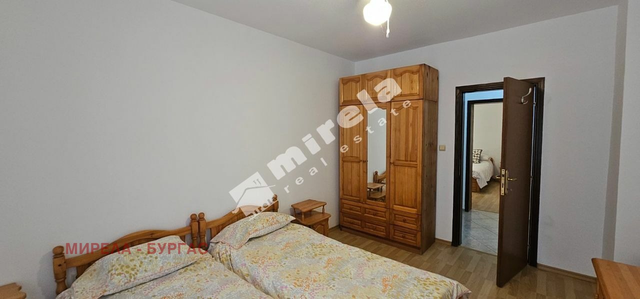 Апартаментът се намира на партерен етаж от общи 5 етажа. Има странична гледка море. Разпределение: коридор, всекидневна с кухненска част , малко мокро помещение, две отделни спални, баня с тоалетна , отделен санитарен възел, голяма тераса.