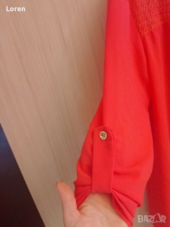 Ново!Цветът е както на последната снимка където е сниман ръкава,там е излязъл 1 към 1 , на другите снимки е от тъмното време и телефона.Цетът е по лъчезарен на живо