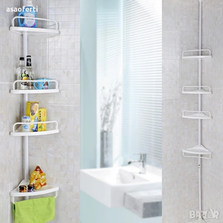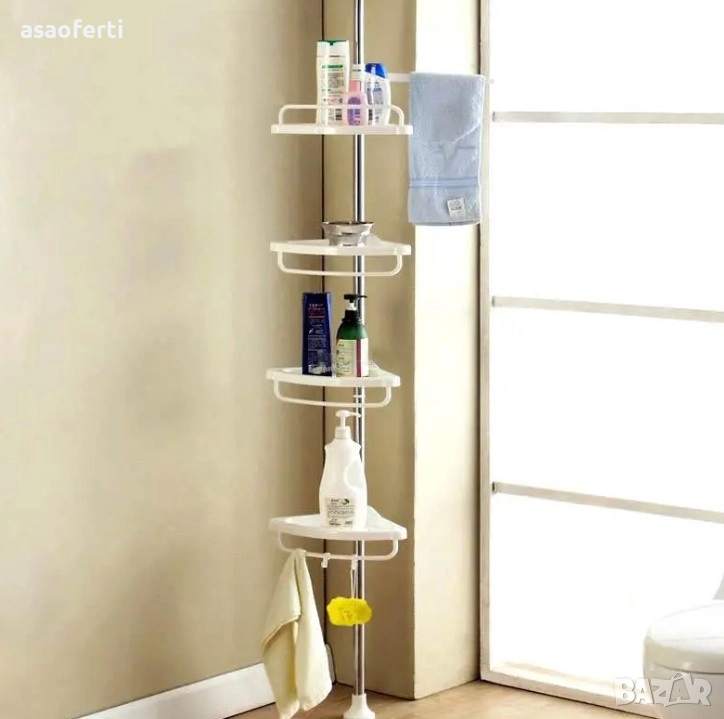 Продавам а, практична ъглова етажерка, която осигурява максимално използване на пространството в банята или душ кабината, без да е необходимо пробиване на плочките.