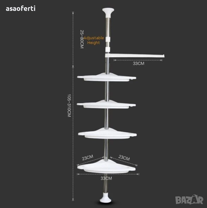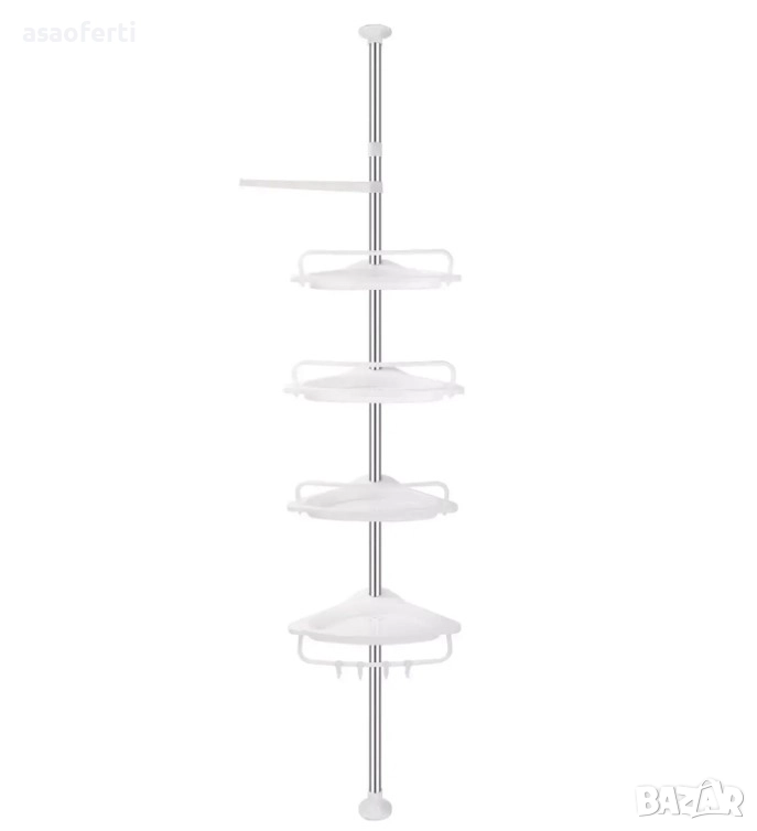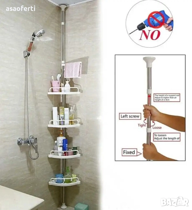 Материал: Телескопичният прът е от неръждаема стомана (инокс), а рафтовете са от здрава ABS пластмаса.