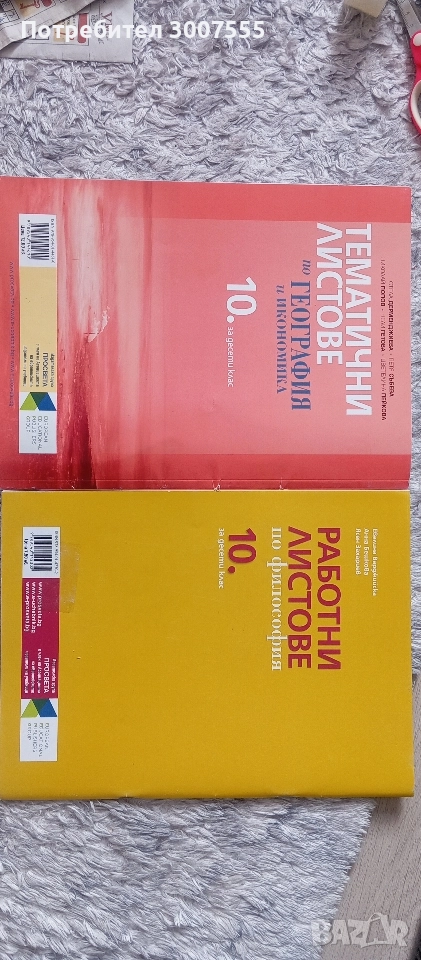 Работни листове по география и философия за 10 клас.Има писано на първите няколко страници, нататък са чисти.География 10лв философия 6,50лв