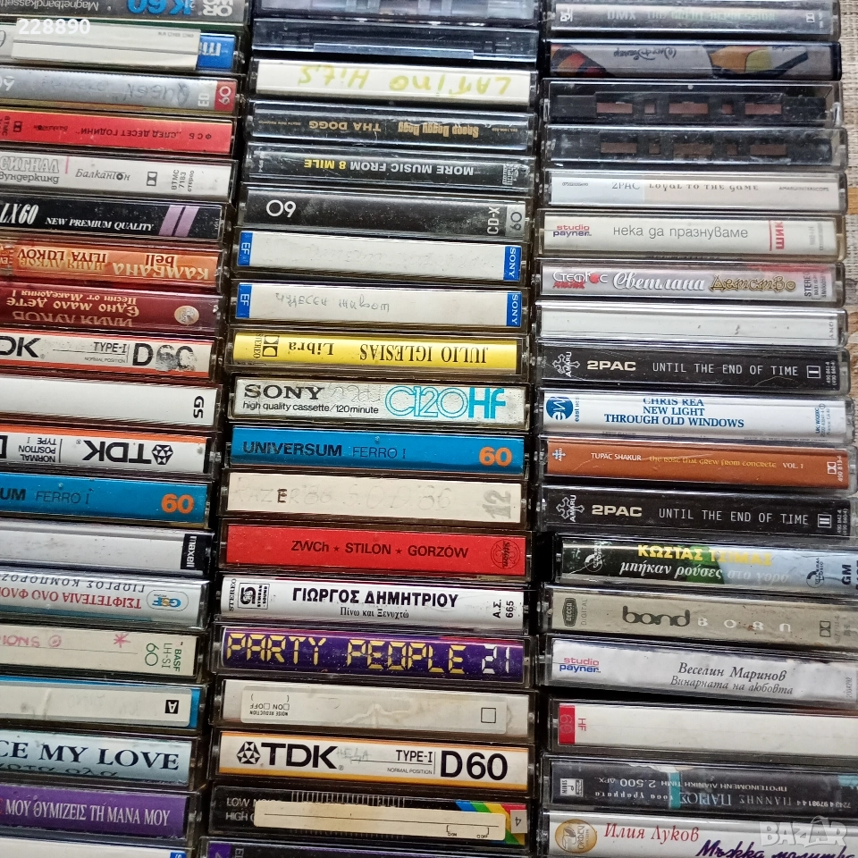 180броя аудио касети.Има и неразпечатвани.Два стилажа.Пратка се изпраща само след като се капарират.Преглед незнам дали ще има,заради недобросъвесни купувачи, който ровят в пратката и си взимат каквото им хареса...без да плащат..Получавате това което виждате на снимките.