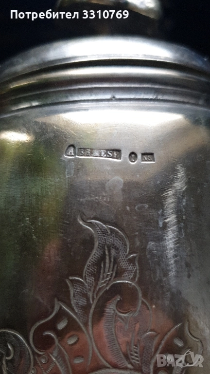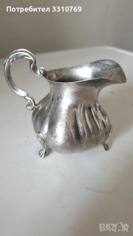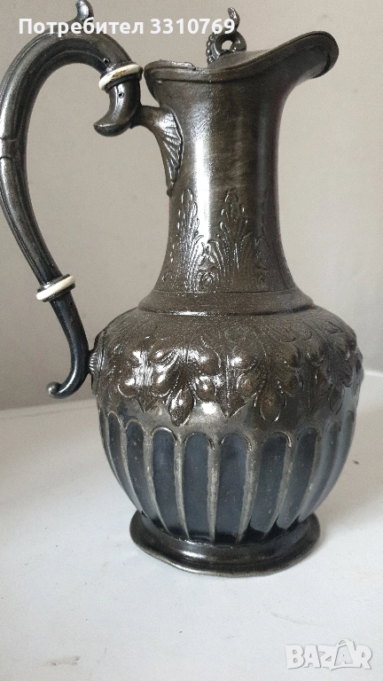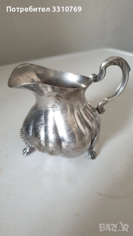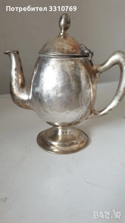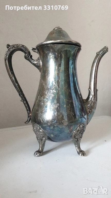 Чайник 1-антикварен,посребрен,от 19век,височина Н=21см.обемО=1,5л.цена Ц=175лв.,печати. Чайник 2-масивен бронз,посребрен,антикварен, Н=25см.,О=1,5л.,Ц= 75лв.,печат Англия. Чайник 3-бронз,посребрен,антикварен, Н=19см.,О=0,5л. Ц=45лв.,без печат. Чайник 4- посребрен, антикварен, Н =15см.,О= 0,25л.,Ц=25лв.,без печат. Кана5-антикварна,посребрена,19век ,Н=23см., О=1л.,Ц=100лв.,печати. Каничка6- посребрена, Н=8см.,О=0,1л.,Ц=15лв. без печат. За колекционери и ценители на редки антикварни художествени предмети!