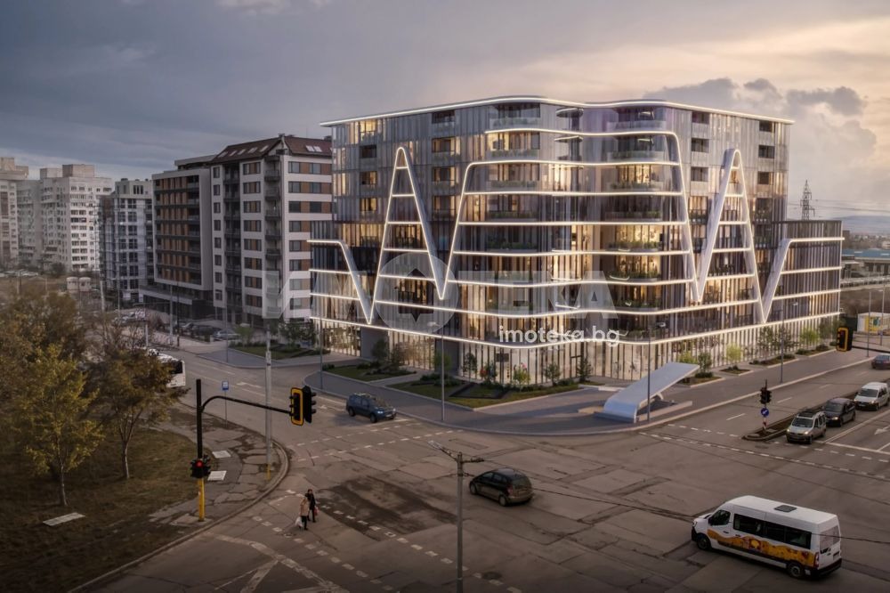 Двустаен апартамент с югозападно изложение, състои се от много просторна дневна, спалня, баня, лоджия. Изключително модерна и впечатляваща сграда, бъдеща емблематична точка в района, съчетава стратегическа локация, съвременна архитектура и удобства от най-висок клас.