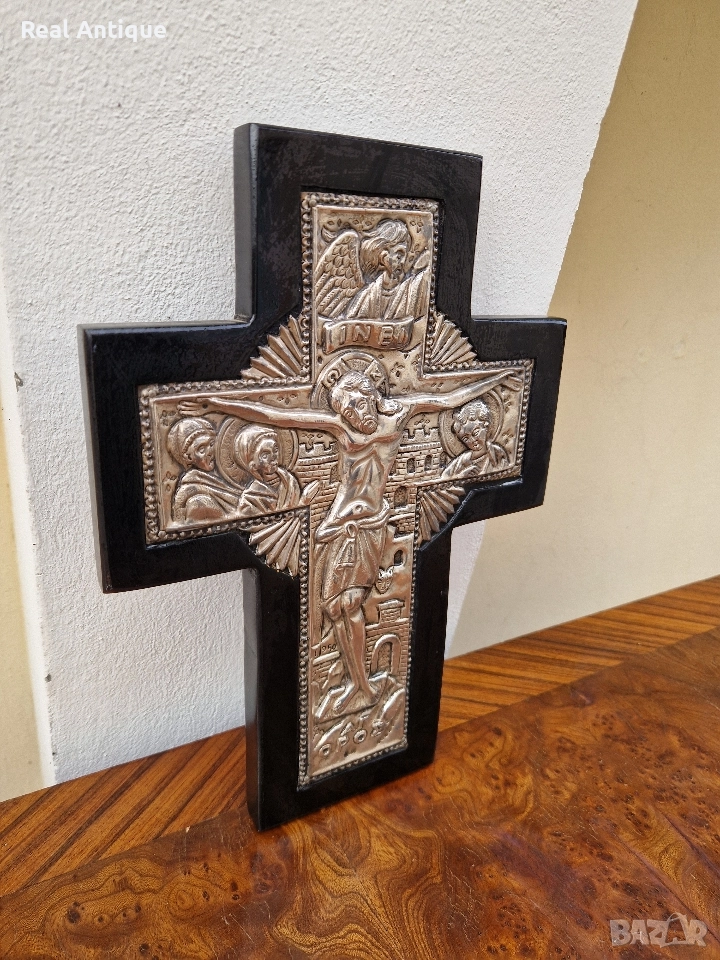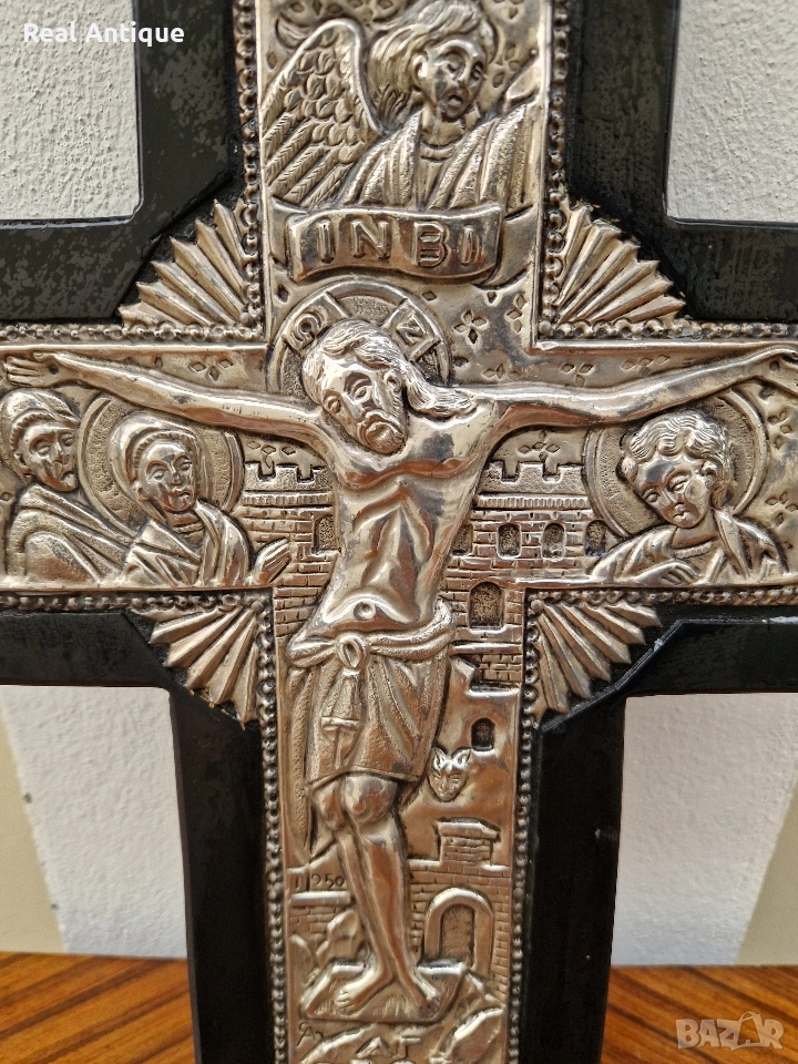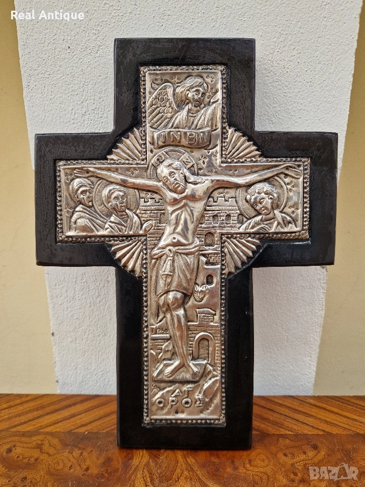 Продавам страхотна антикварна сребърна икона кръст в перфектно състояние без никакви забележки с наличните маркировки и сертификат. Размери 31 см на 23 см. Работя с всички куриери. Отговарям бързо.