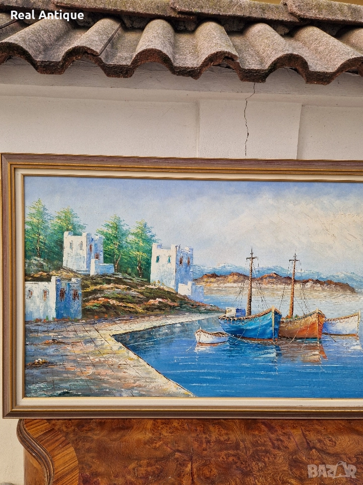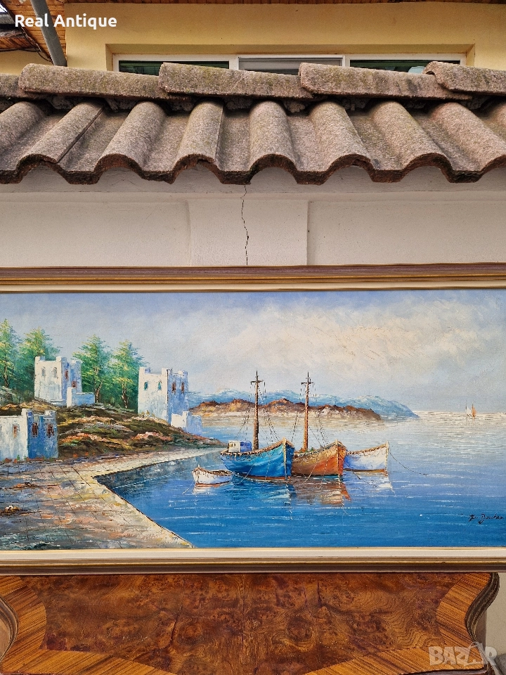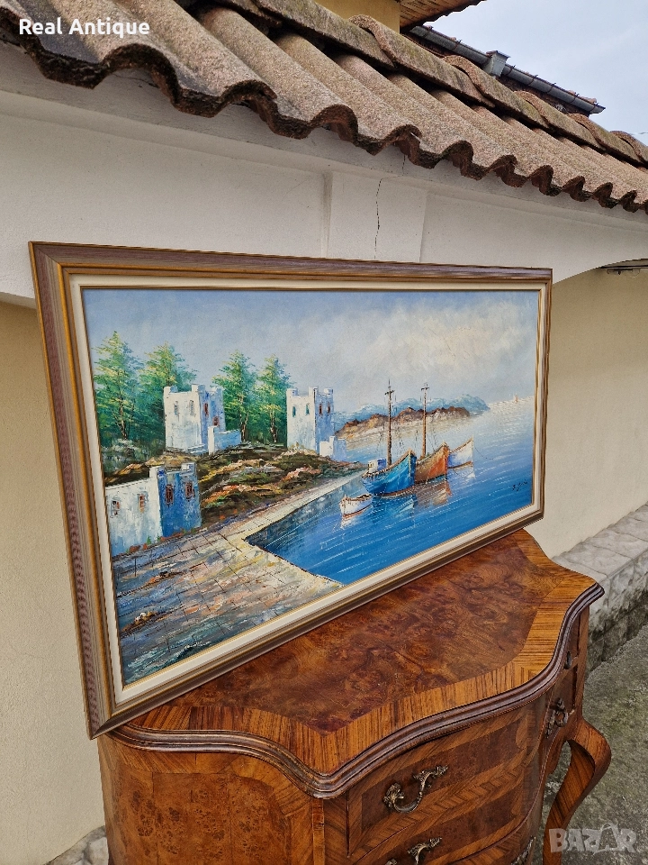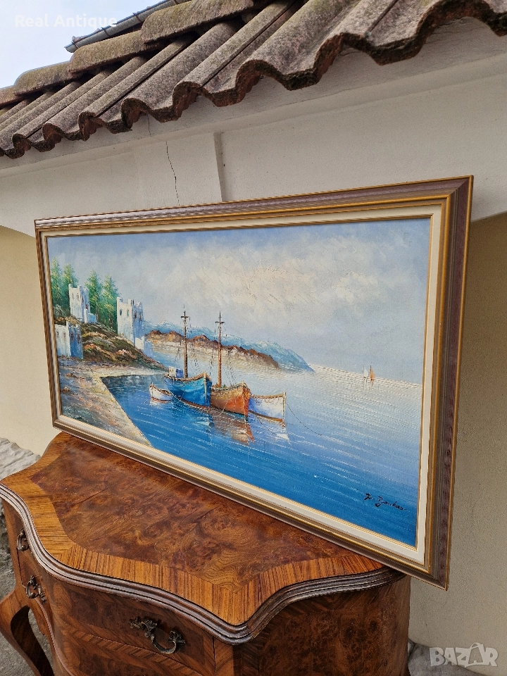 Продавам огромна превъзходна много красива антикварна авторска майсторска картина масло върху платно в перфектно състояние без никакви забележки. Размери 130 см на 70 см. Прекрасно допълнение към интериора на Вашия дом офис вила ресторант хотел. Подходяща и за подарък. Работя с всички куриери. Отговарям бързо.