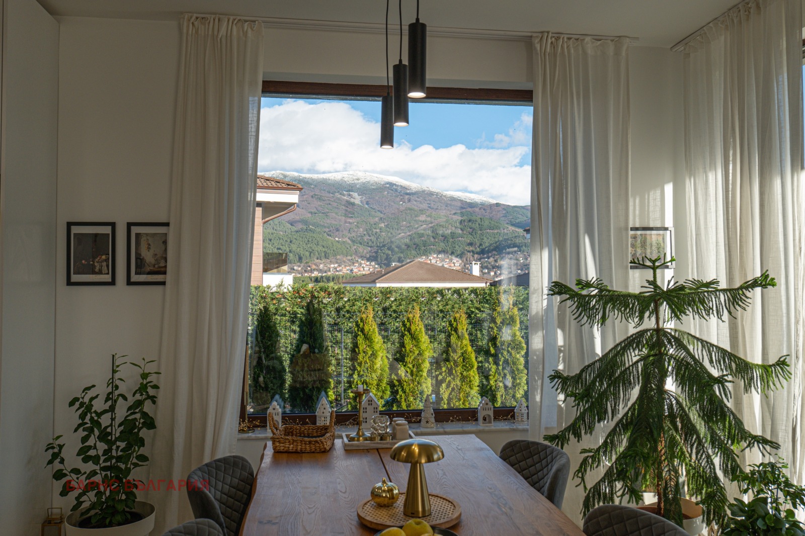 От дневната широките френски прозорци откриват гледка към градината и планината.