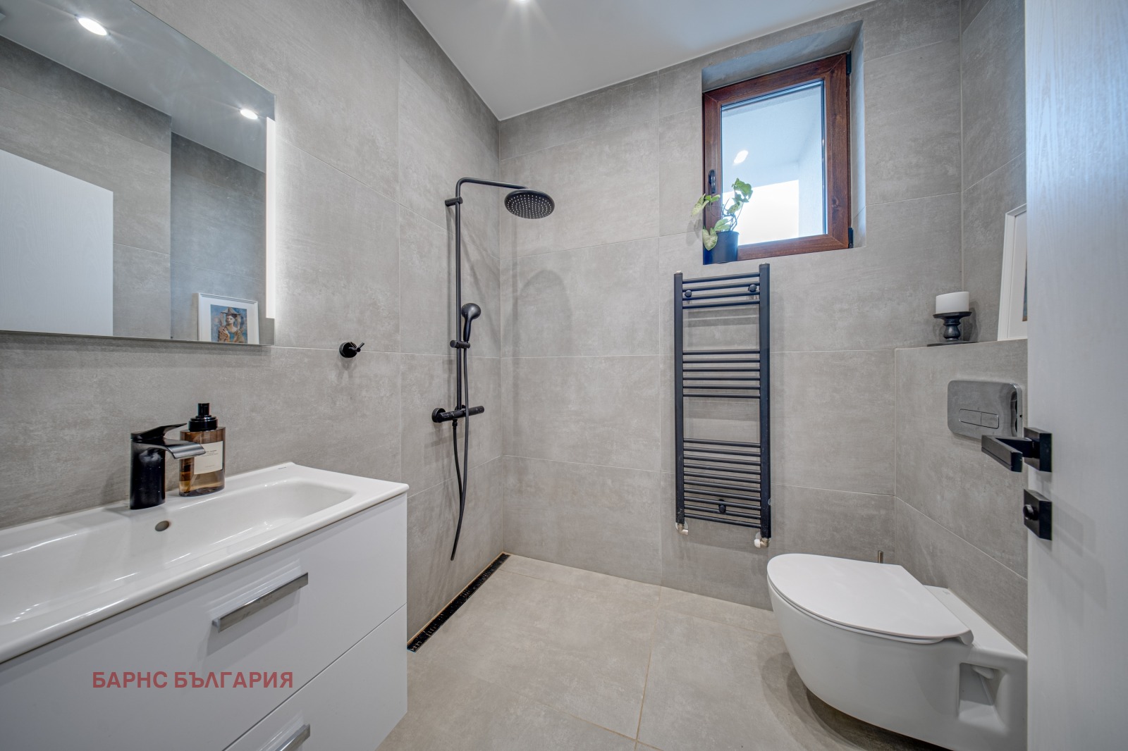 Банята към мастър спалнята разполага допълнително с вана, освен отделния комплект подвижен душ и пита.