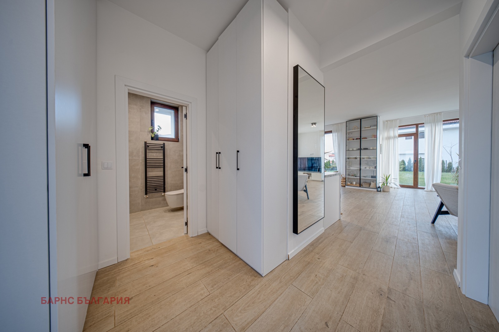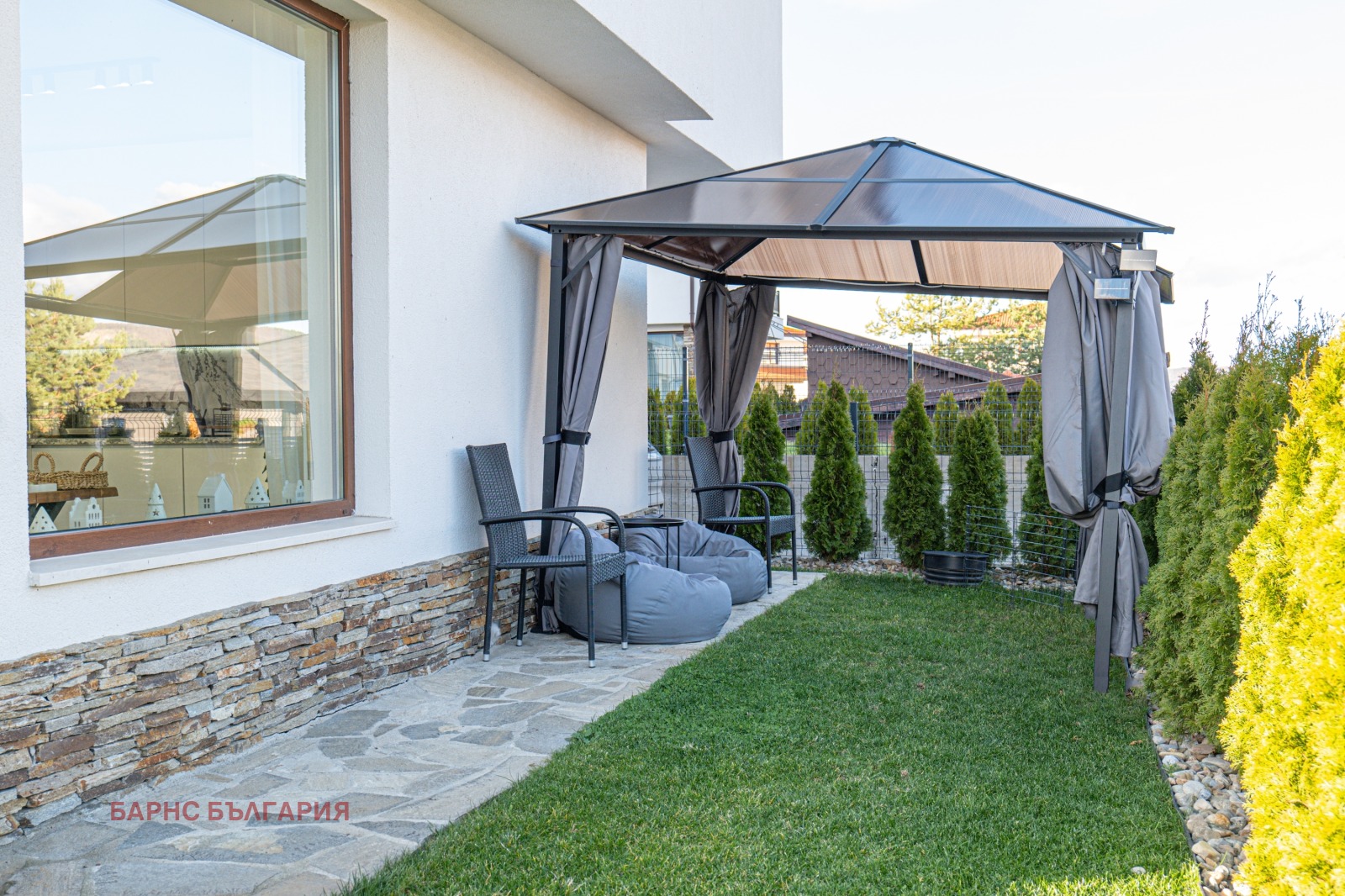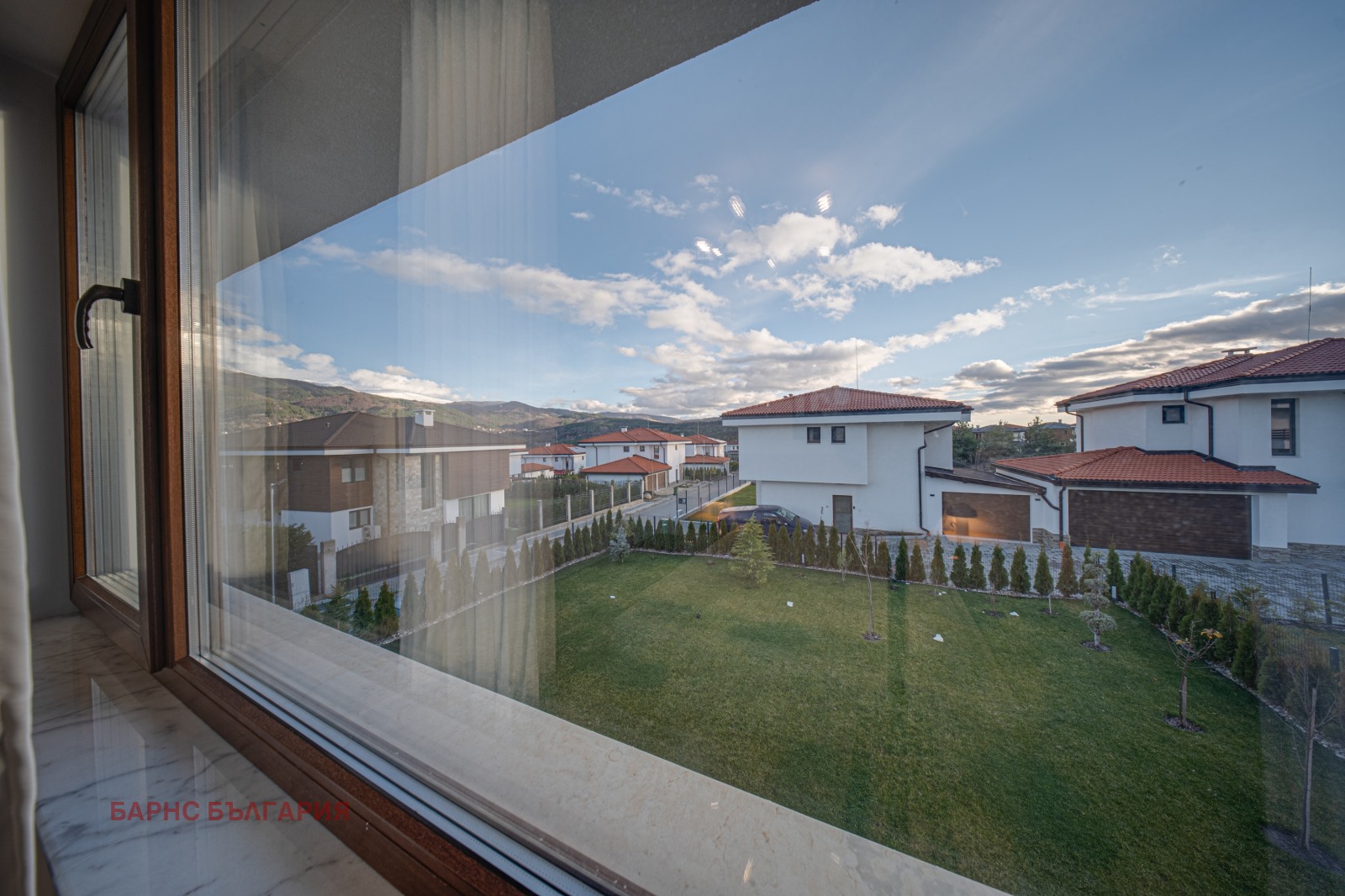 Модерен дом, разположен в престижния затворен комплекс Delta Hill имот с изчистена архитектура, просторни помещения и впечатляващи гледки към Витоша. Къщата е позиционирана в по-новата и най-висока зона на комплекса, на около 1000 м надморска височина, което осигурява по-чист въздух, повече слънчеви дни и тиха, спокойна среда. Дворът е поддържан, озеленен и оформен с подбрани растения, което допринася за уединението и хармонията на пространството.