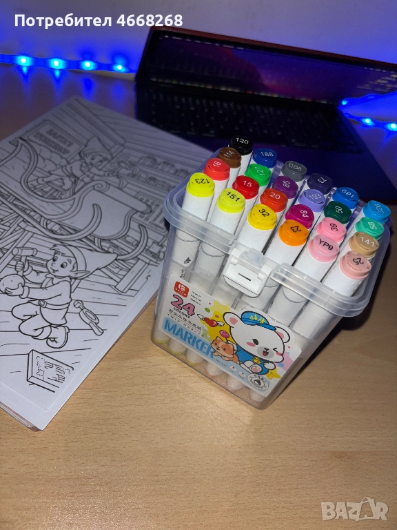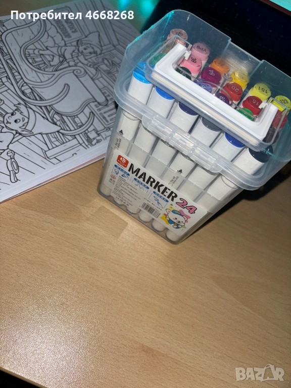 Предлагам комплект 24 висококачествени двустранни маркера, подходящи както за деца, така и за начинаещи и напреднали художници. Всеки маркер има две различни върхчета – тънък за детайли и широк за плътно запълване.