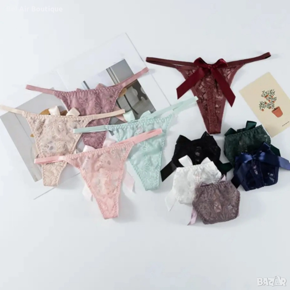 Дамско дантелено бельо, прашки със акцент сатенена панделка - налични в черно, бяло, розово, пепел от рози, светлосиньо и бежово Цена: 10лв./брой При поръчка на всички цветове *промо* цена - 5лв./брой Размерът е универсален, подходящи за S, M размер !!Всичките ни модели са чисто нови. Втора употреба НЕ предлагаме!!