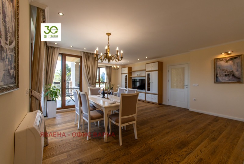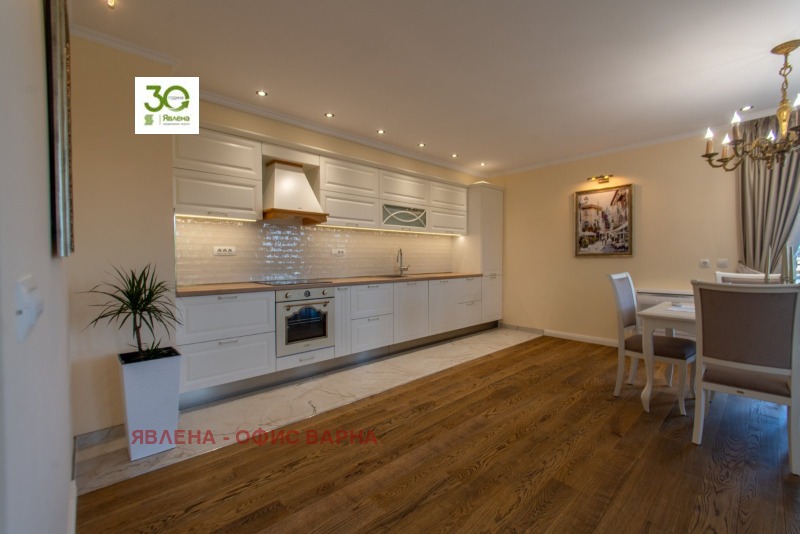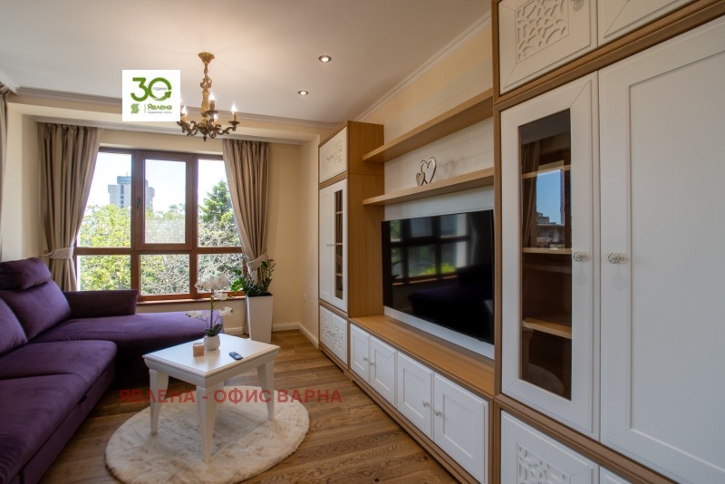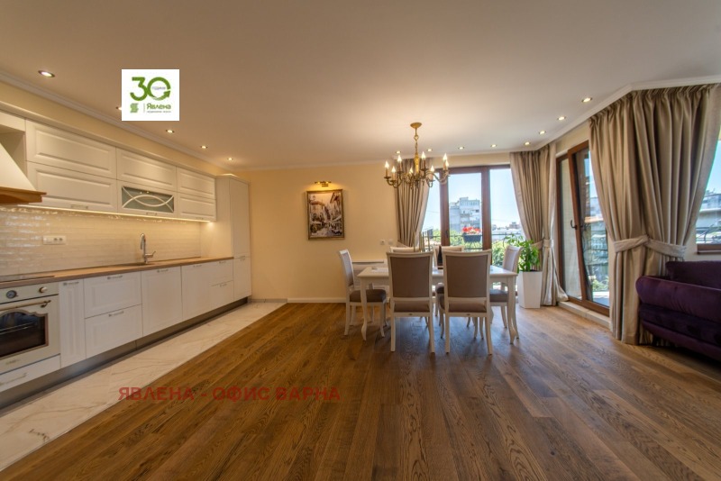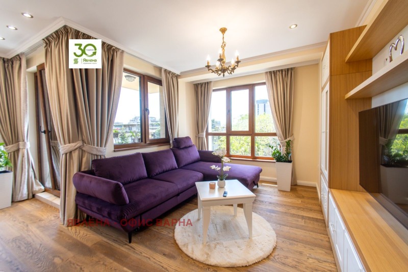 ID:161149 Луксозен имот, с площ от 122 кв.м., в близост до Община Варна и Червен площад, намиращ се в модерна сграда, притежаваща сертификат за енергийна ефективност клас А и с отлични общи части. Жилището е разпределено в удобно входно антре, коридор, просторен дневен тракт с излаз на тераса, две големи спални, санитарен възел, перално помещение и килер, като соларен панел осигурява топла вода. Апартамента е напълно обзаведен с висок клас уреди и мебели по поръчка, видно от снимките и очаква своите първи бъдещи наематели. Дългосрочно отдаване под наем, без домашни любимци.