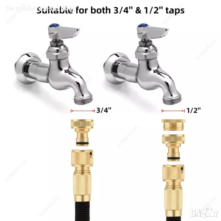 Удобен, лек и изключително практичен, този разтегателен градински маркуч се разтяга от 5 до 15 метра, когато е под налягане, и се прибира обратно до компактни размери, което го прави идеален за малки дворове, тераси или балкони.