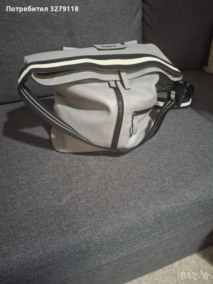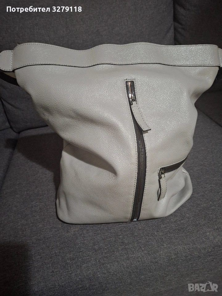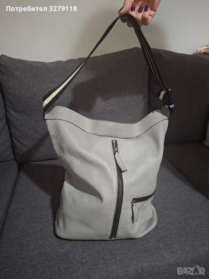 Продавам светло сива, кожена чанта