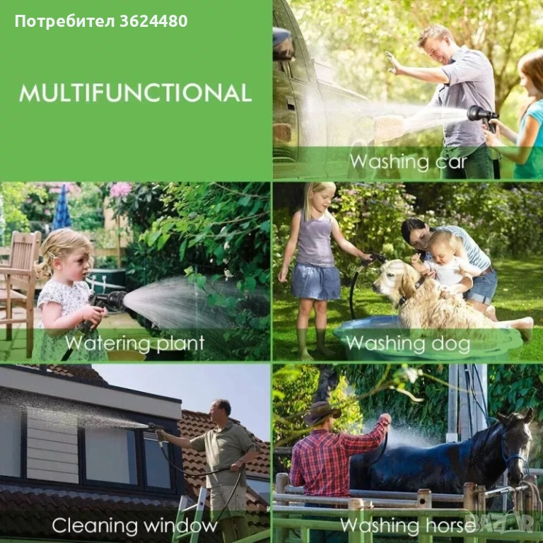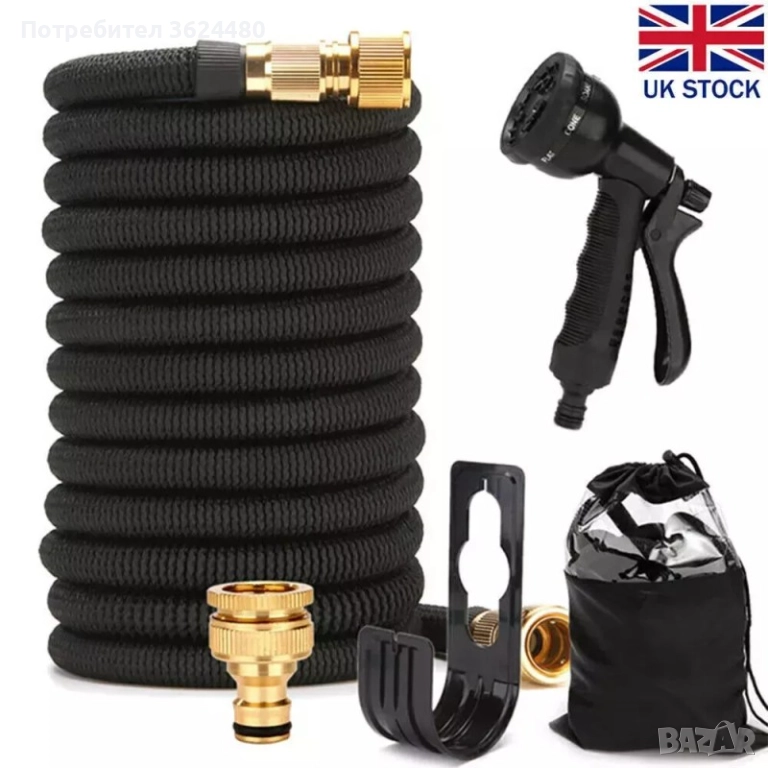 В комплекта са включени адаптер 1/2", стойка за съхранение, пистолет с няколко режима на струя и чантичка за прибиране, което прави този маркуч готов за употреба още сега!