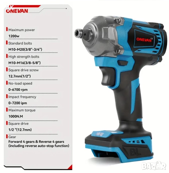 , 4-степенен 1/2" безчетков електрически гаиковерт, автомобилни и мебелни инструменти, съвместим с ONEVAN батерии, безжична отвертка, инструмент за ремонт на мебели, ергономичен хват, издъжливаа пластмаса, здрава конструкция, DIY проекти, компактен дизайн, мощен мотор, DIY ентусиасти