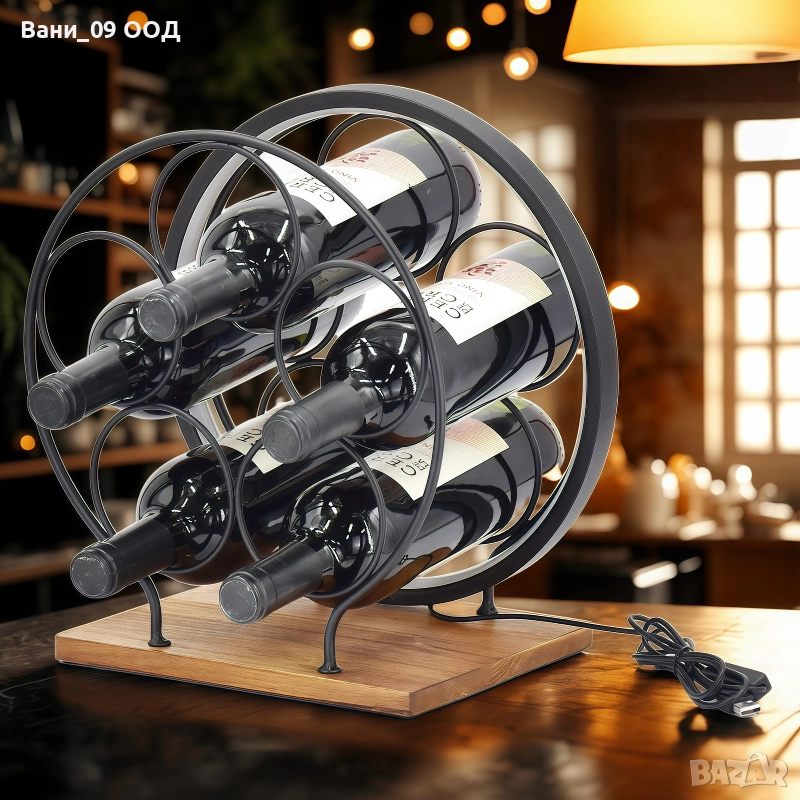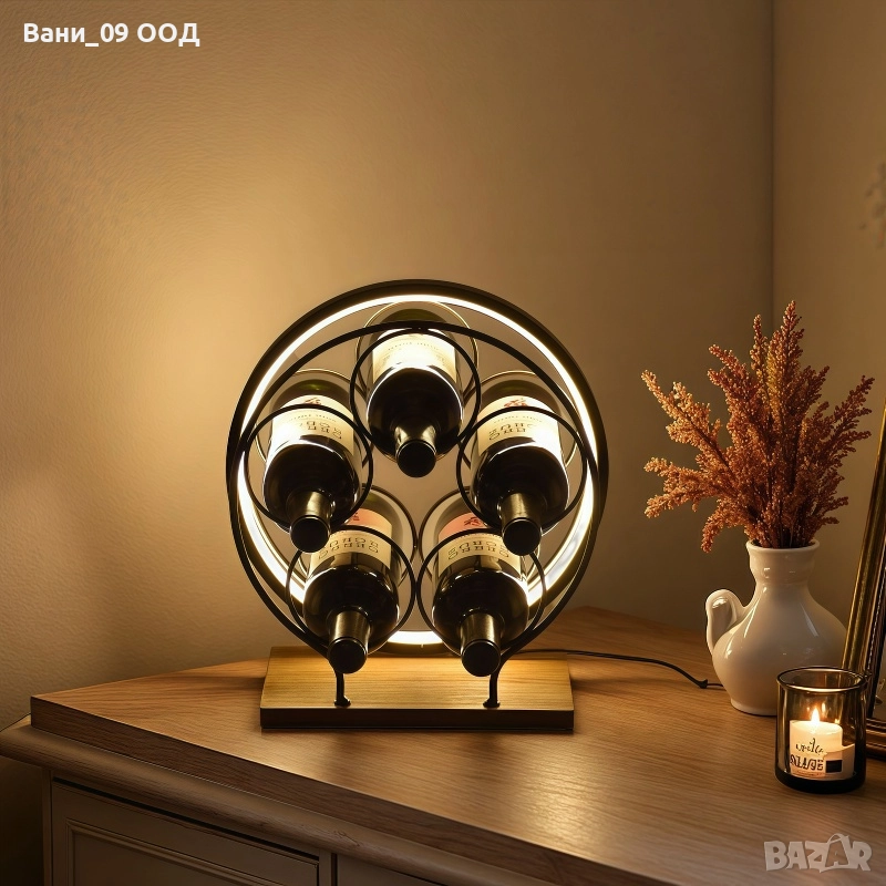 Уникална стойка за съхранение и представяне на бутилки вино с вградено осветление. Създава изключително впечатление и подчертава характера на всяка бутилка. Подходяща за специални поводи, барове или за акцент в домашния интериор.