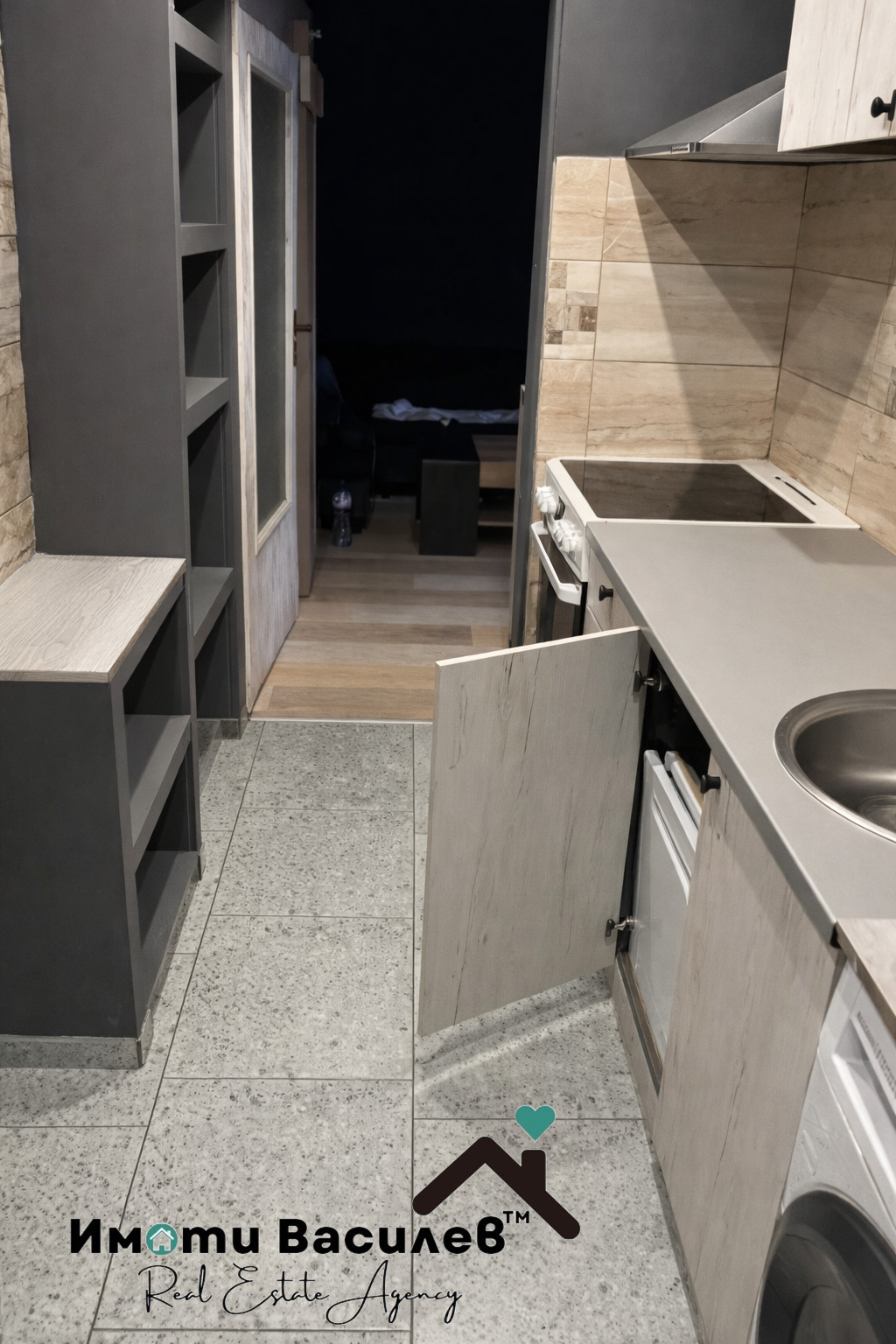 - Хол с кухненски бокс просторен и светъл, осигуряващ уютно и функционално пространство за всекидневие.