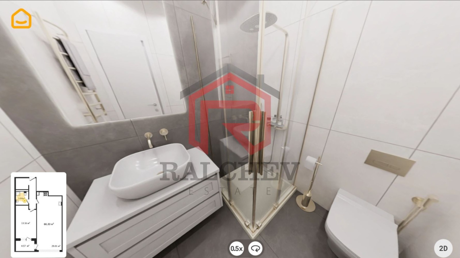 Агнеция за недвижими имоти 'Ралчев Естейт' предлага на вашето внимание ЮЖЕН Двустаен апартамент. Жилището се намира в сграда ново строителство в етап на изграждане пред Акт 14. Стаите са с правилни форми и разпределение, както следва: входно антре; на площ от 28,50 кв.м всекидневна с взможност за обособяване на кухненски бокс с трапезария и зона за релакс; спалня с отлична площ от 13 кв.м, от двете стаи се излзиа на обща тераса Лоджия, комбиниран санитарен възел. Сградата съчетава стилна архитектура, висококачествено строителство и комфортна градска среда. Апартамента се издава завършен по БДС, а именно: шпакловка на стени и тавани, замазка на подовете, PVC догарама във всички стаи, външна топлоизолация, ключове и контакти, входна блиндирана врата.