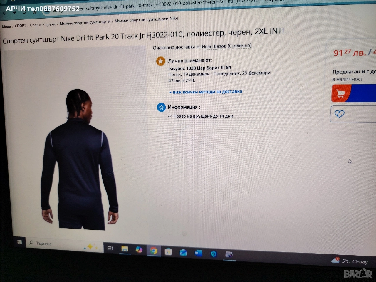 Спортен суитшърт Nike Dri-fit Park 20 Track Jr Fj3022-010, полиестер, черен, M INTL → Обява 52650296