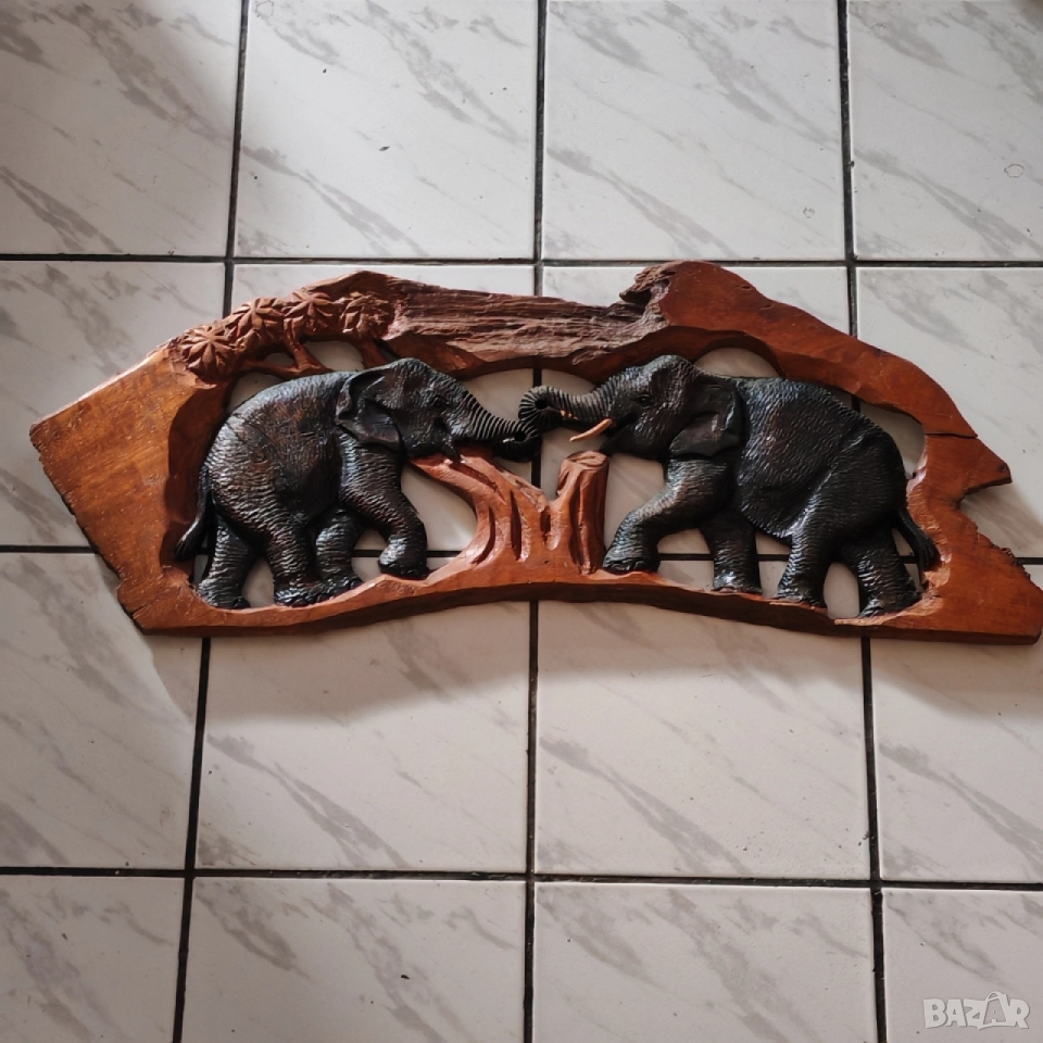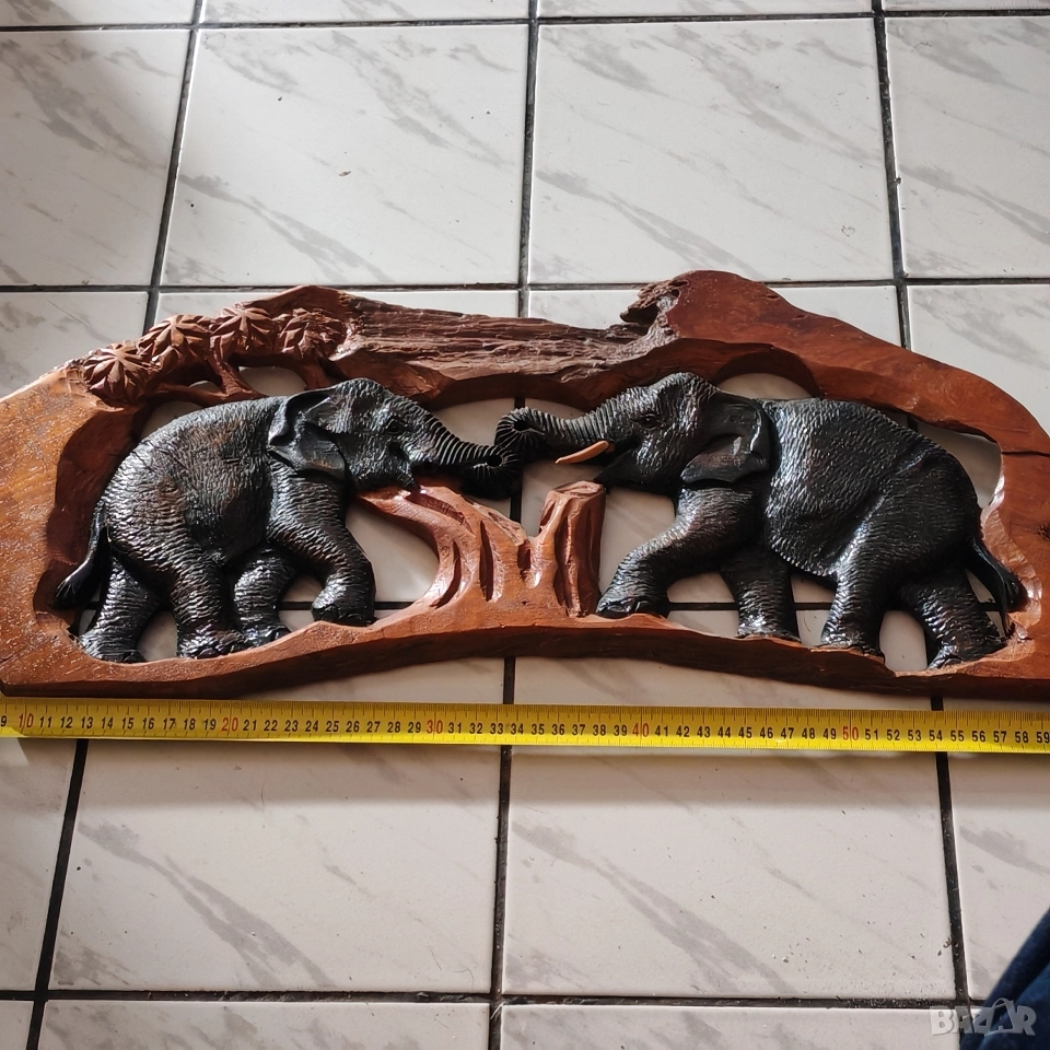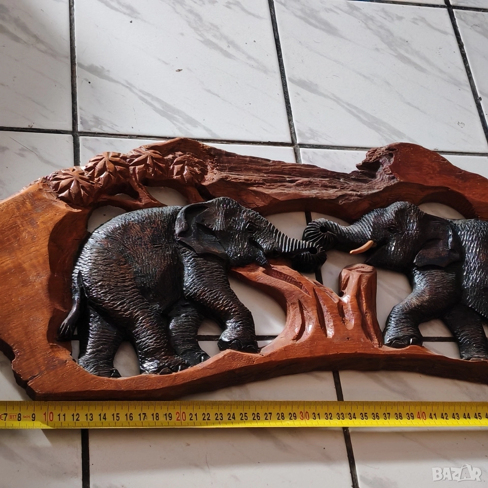 Пано за стена, дърворезба,Слонове. → Обява 52650359