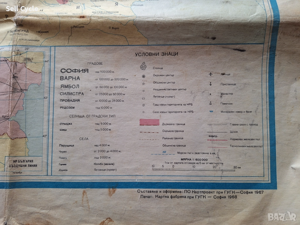 ✅АДМИНИСТРАТИВНА КАРТА НА БЪЛГАРИЯ - 1967 г.❗ → Обява 52650376