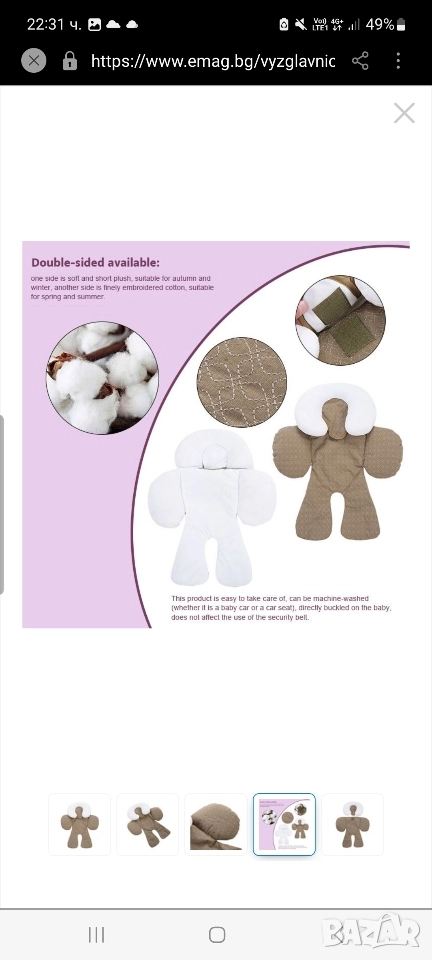 2.Двустранна подложка за детска количка или столче за кола и възглавница против обръщане - горната част се маха 15лв.