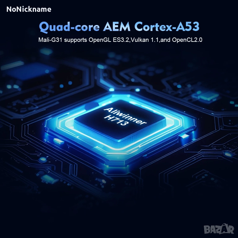 • Ouad-core AEM Cortex-A53: Mali-G31 поддържа OpenGL ES3.2, Vulkan 1.1 и OpenCL2.0