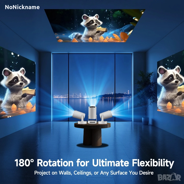 • Завъртане на 180° за максимална гъвкавост: Проектирайте върху стени, тавани или всякаква повърхност, която желаете
