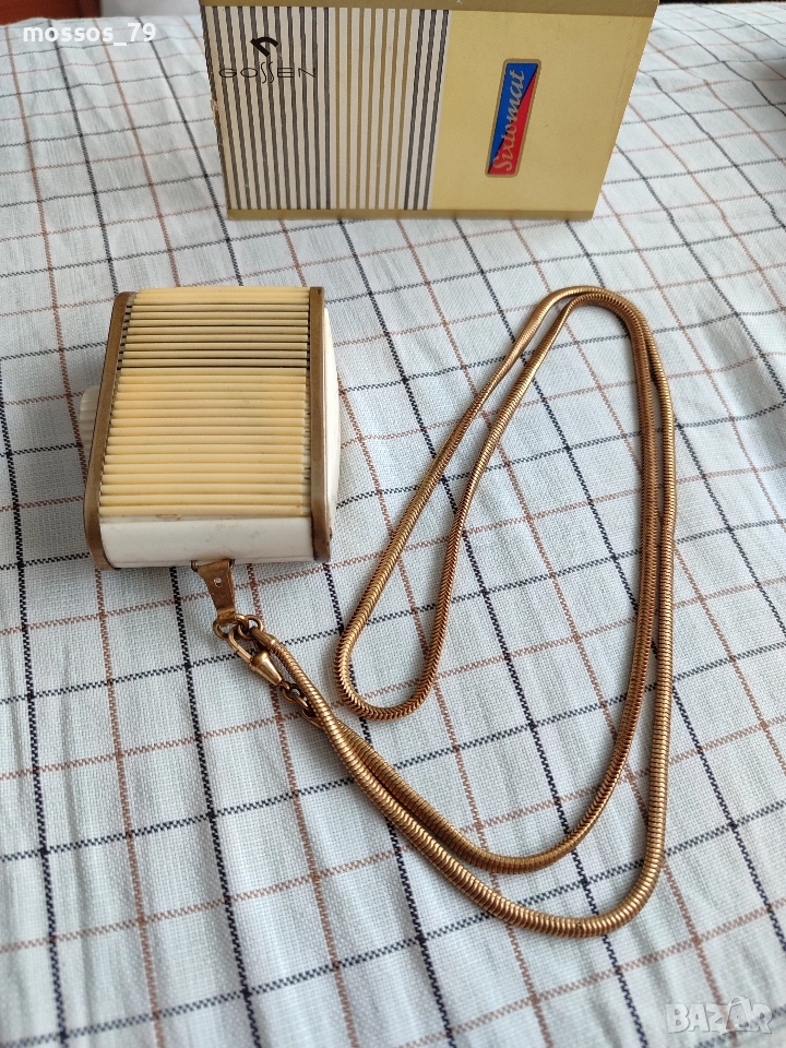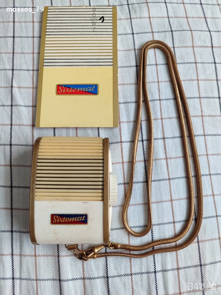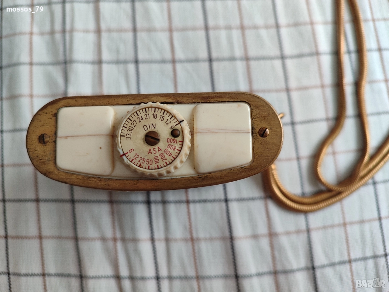 Стар фотометър (от 50-те години на миналия век) Gossen Sixtomat с бронзова верижка. Това е селенов фотометър за любители, който работи без батерия. Използва се за измерване на интензивността на светлината и определяне на подходящата експозиция във фотографията. Позволява настройване на скоростта на затвора и блендата, а при фиксиране на едната стойност автоматично изчислява другата. Някои модели, като „Color Finder“, могат също да измерват цветната температура. Произведен е в Германия от известната марка Gossen.