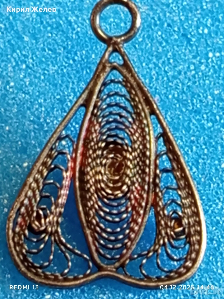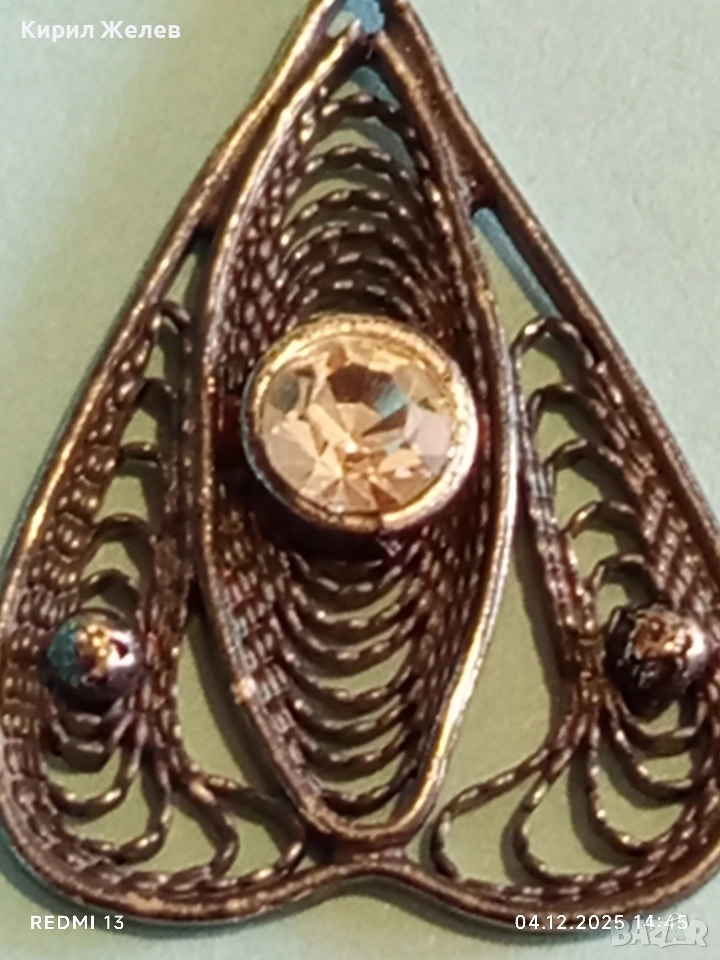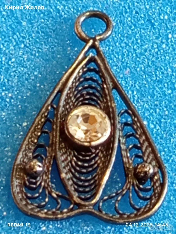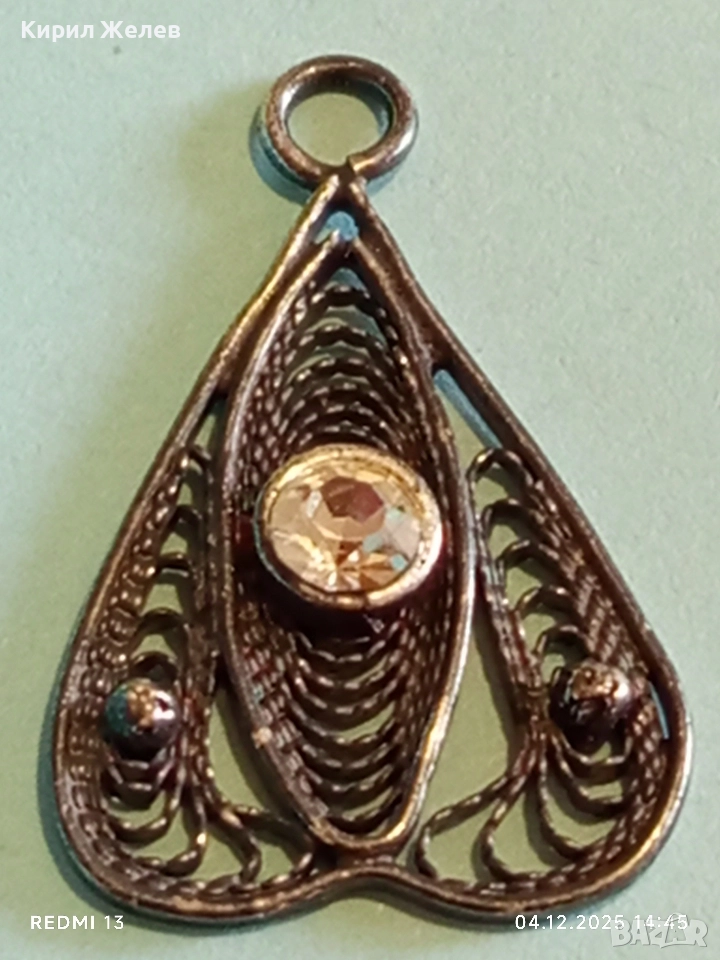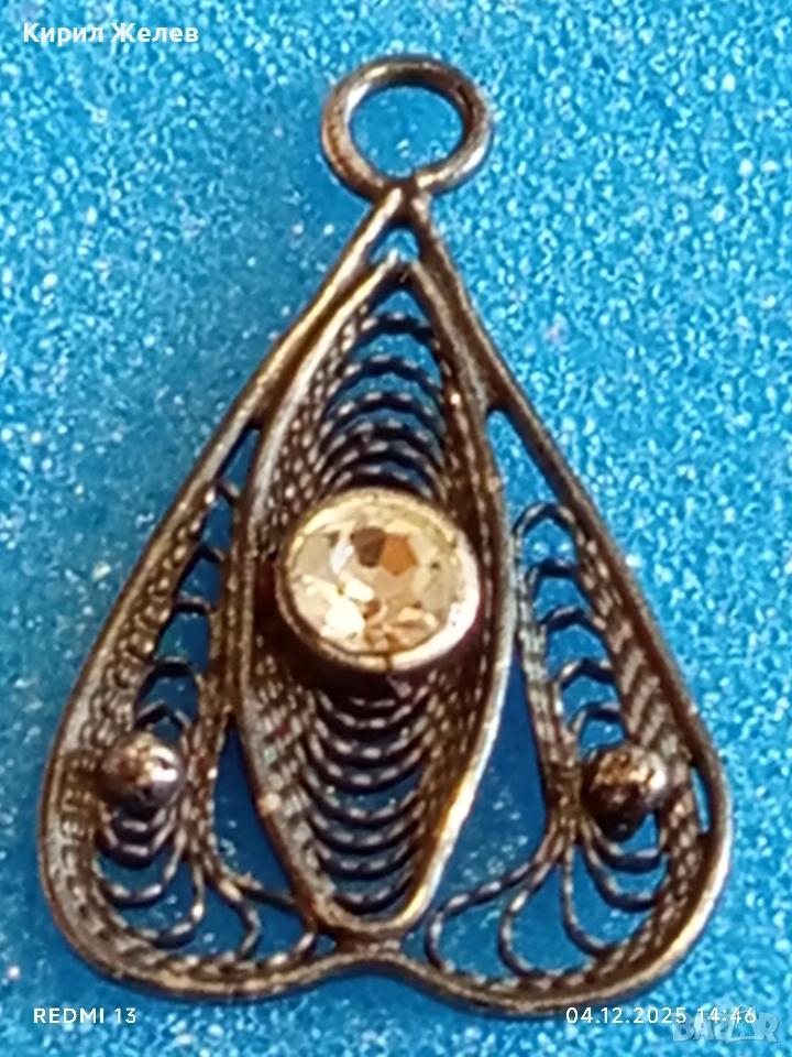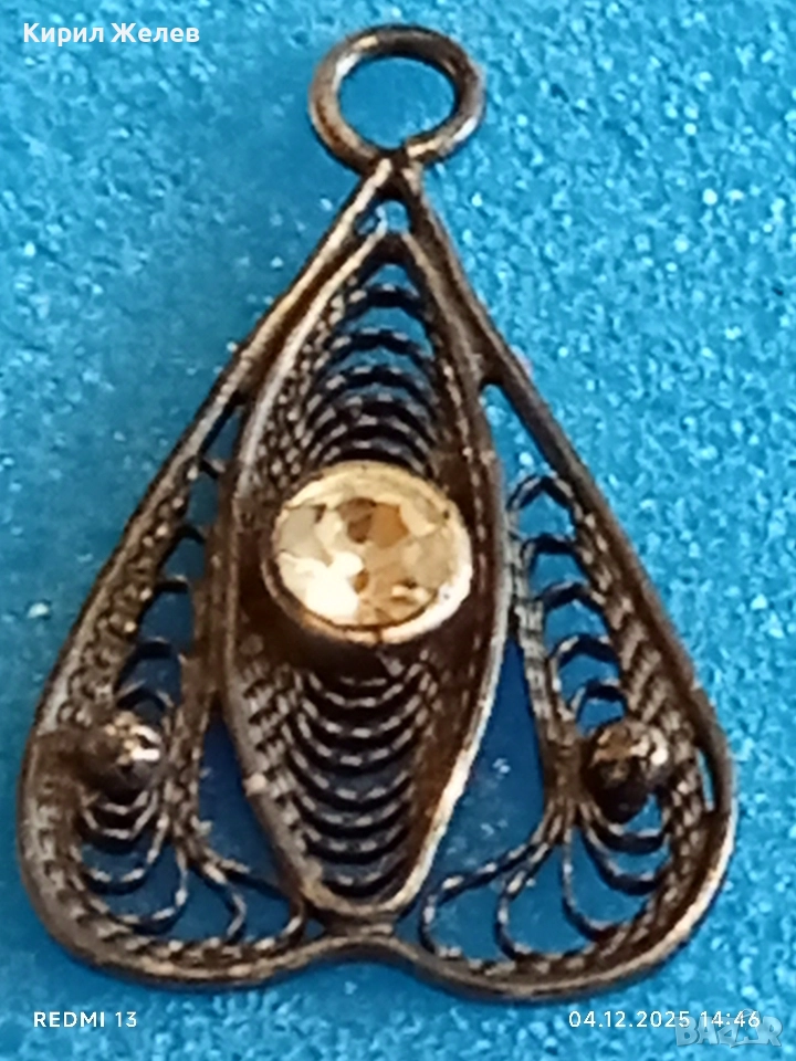 Стара филигранна сребърна с гранулация и камък висулка пендант 52422